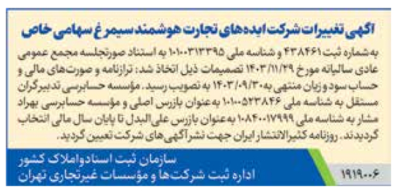 آگهی تغییرات شرکت ایدههای تجارت هوشمند سیمرغ سهامی خاص