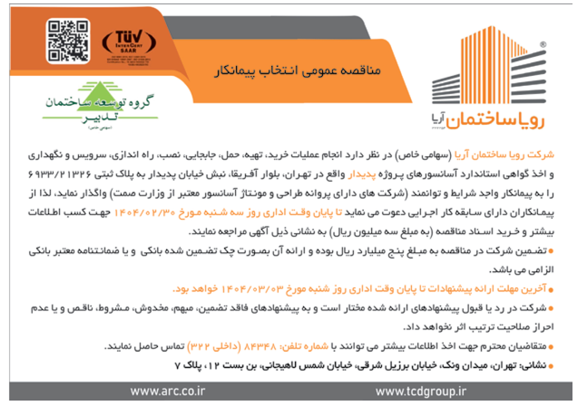 در حافظه موقت ذخیره شد... تصویر منـاقصـه عمـومـی گروه توسعه ساختمان تدبیر ۱۷ اردیبهشت ۱۴۰۴ شماره هشت هزار و هفتصد و سی و سه - صفحه ۶