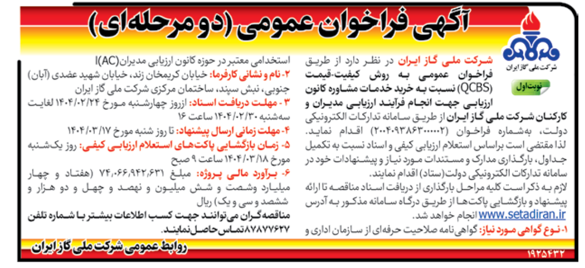 آگهی فراخوان عمومی (دو مرحلهای)