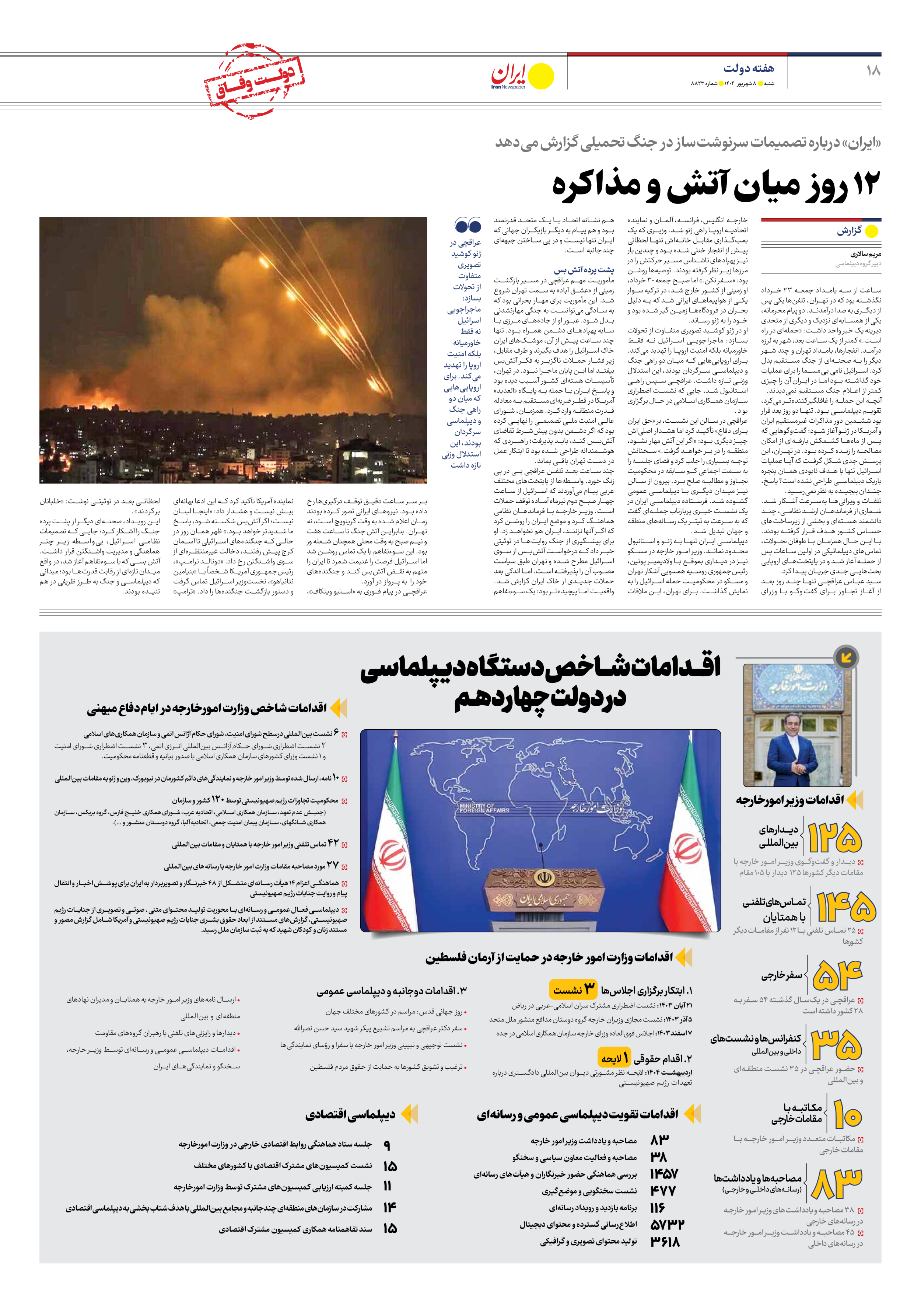 اقــدامات شــاخص دستگاه دیـپلماسی در دولت چهاردهـم