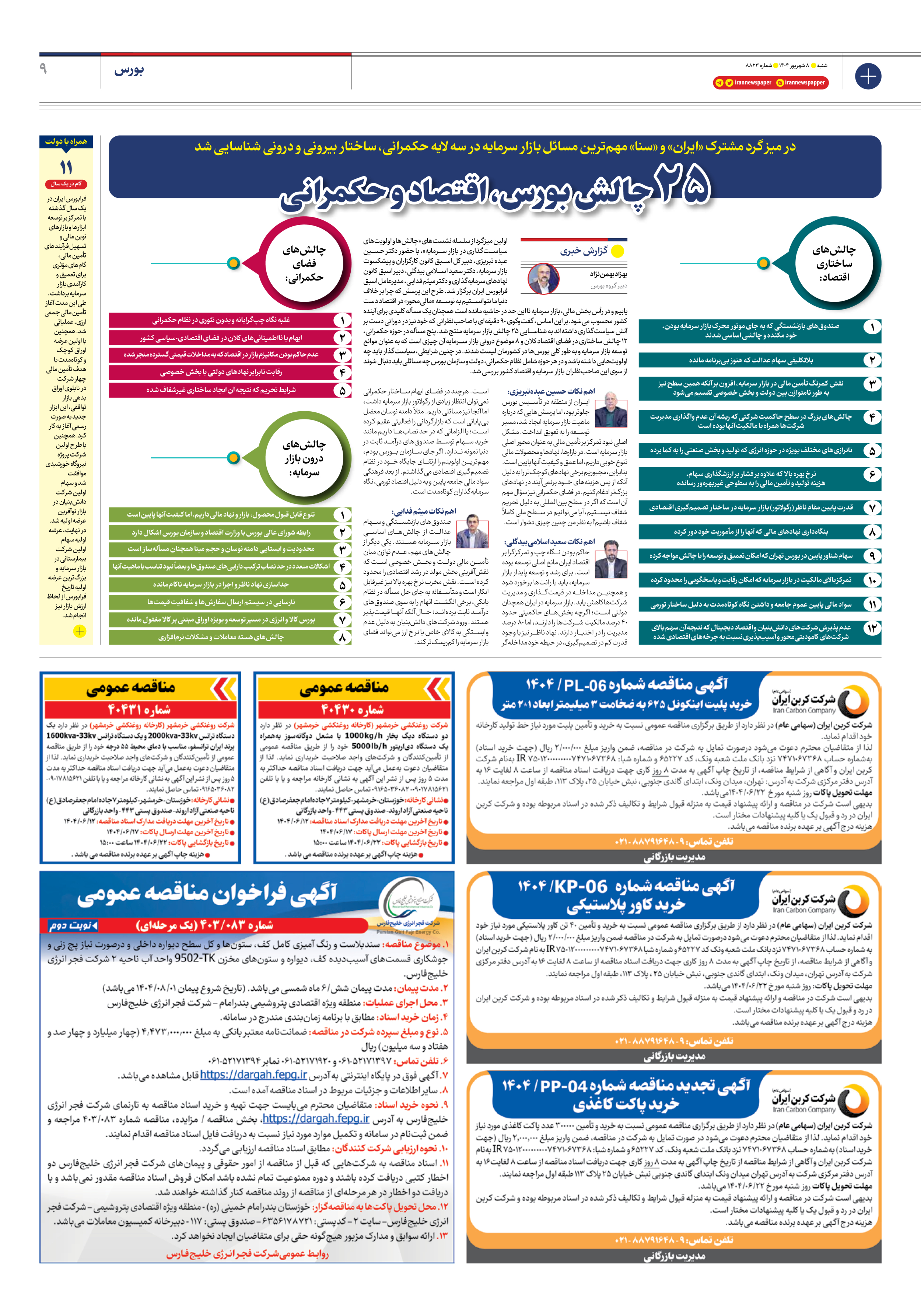 ۲۵ چالش بورس، اقتصاد و حکمرانی