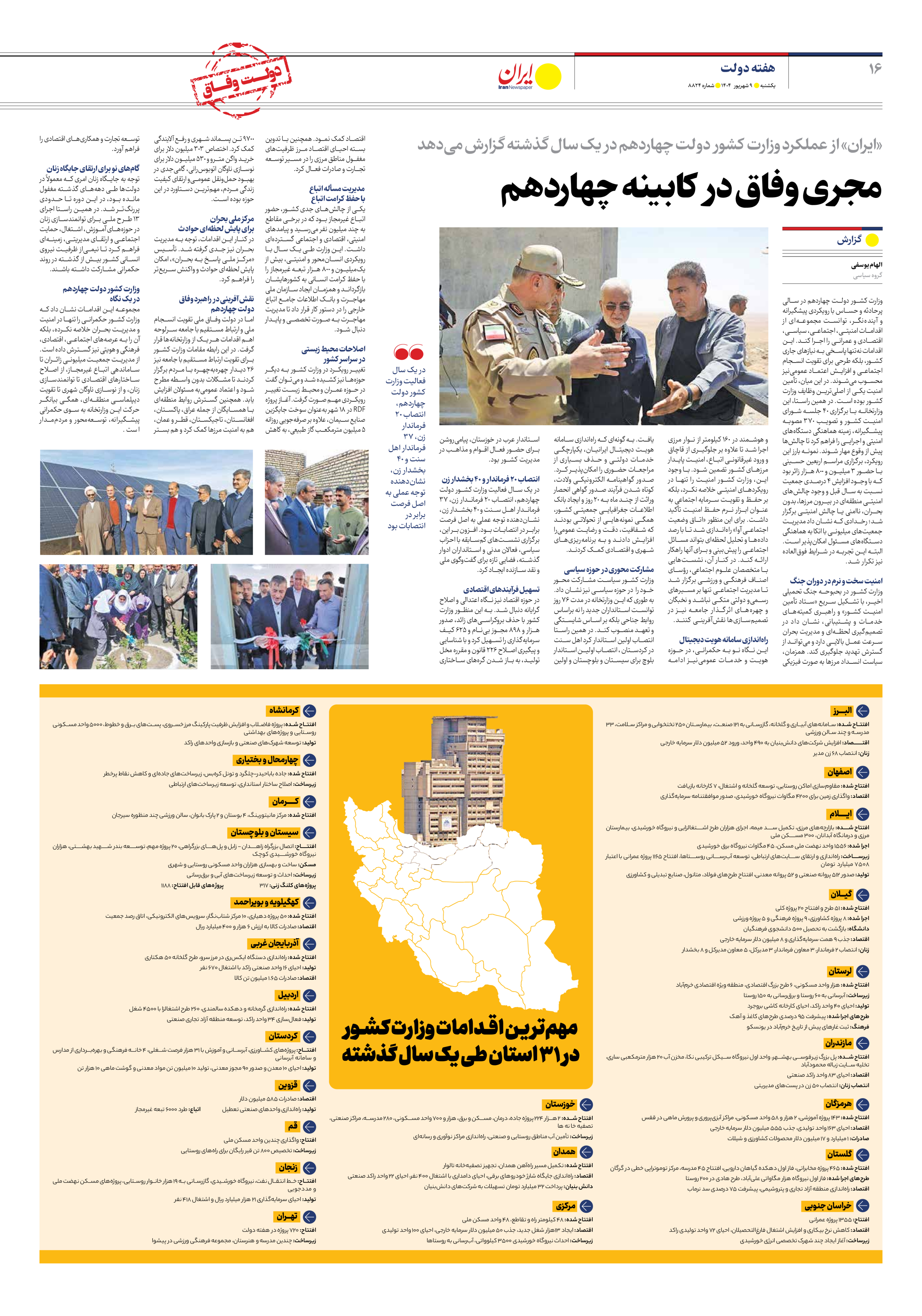 مهمتر یـن اقـدامات وزارت کشـور در 31 استان طی یک سال گذشته