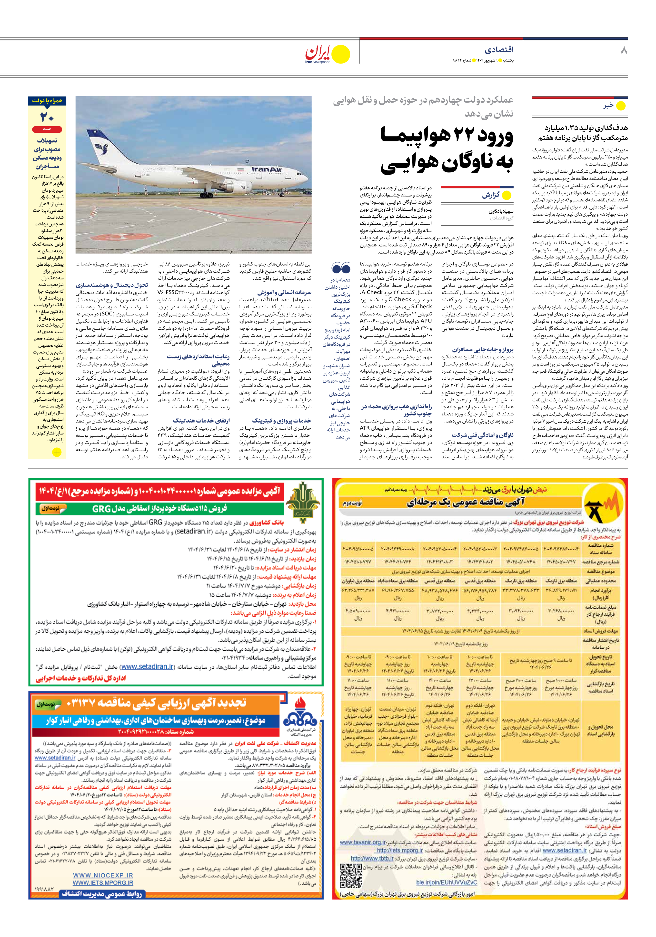 ورود 22 هواپیمـــا به ناوگان هوایــی
