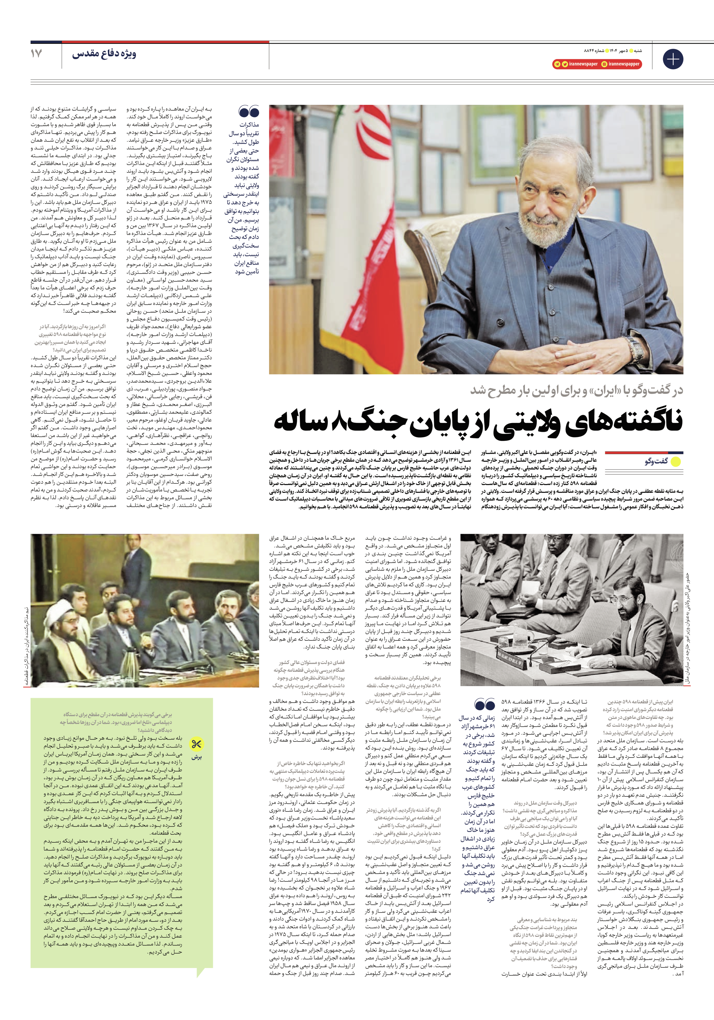 ناگفتههای ولایتی از پایان جنگ 8 ساله
