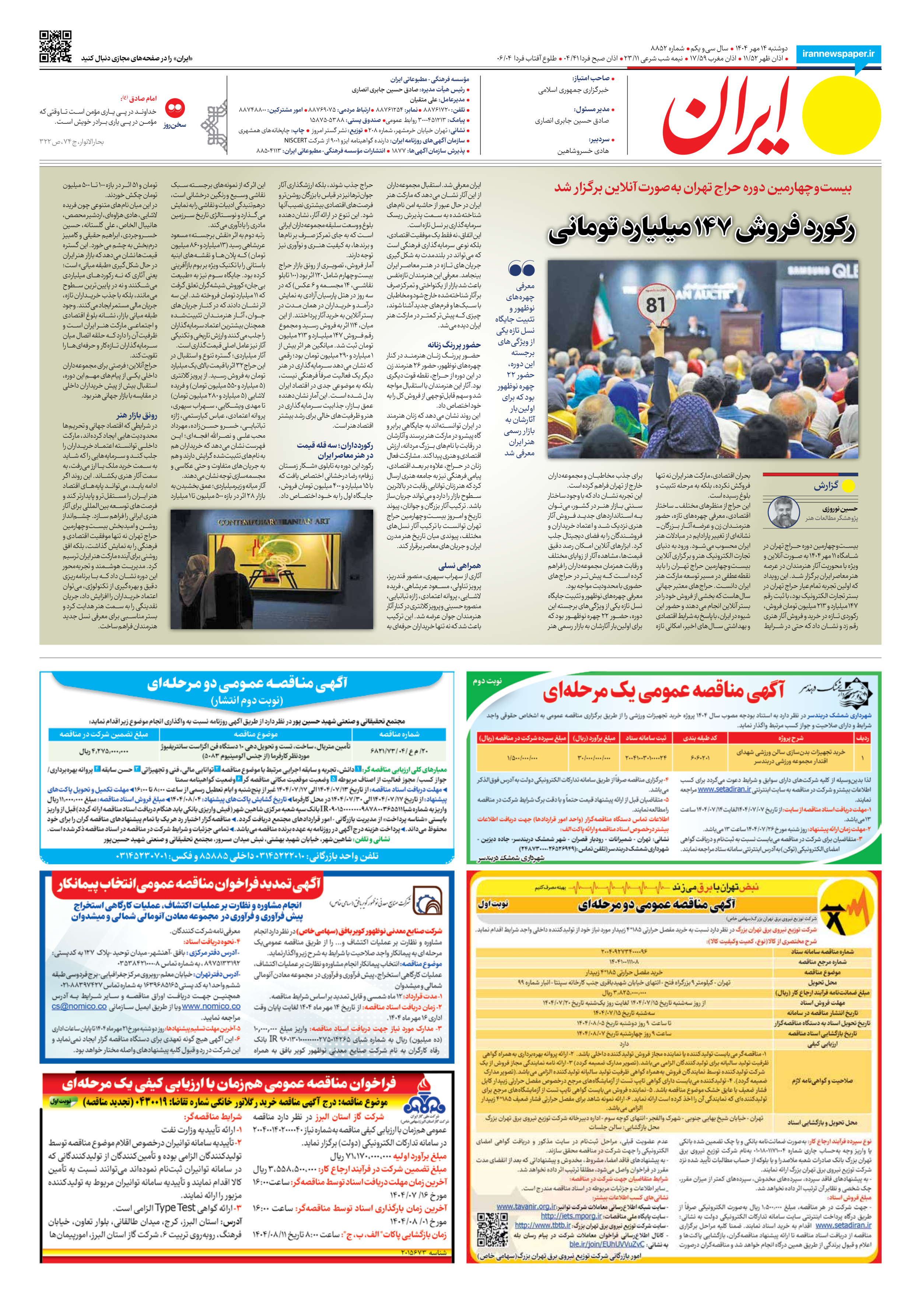رکورد فروش 147 میلیارد تومانی