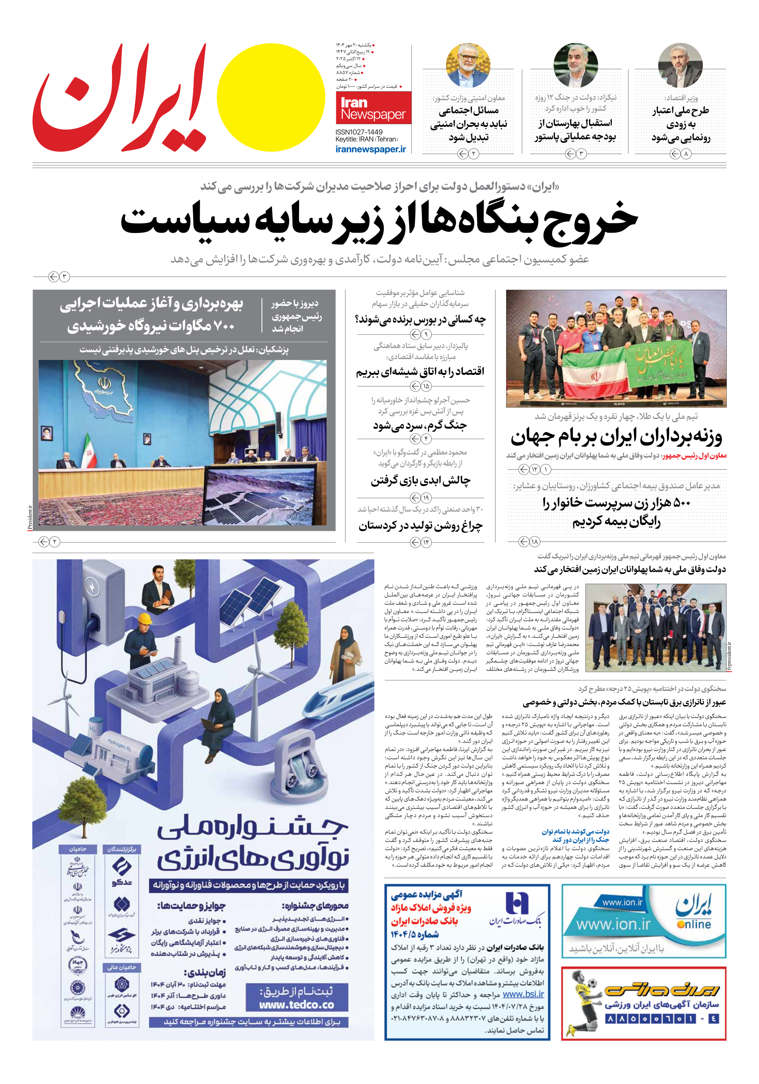 - شماره هشت هزار و هشتصد و پنجاه و هفت - ۲۰ مهر ۱۴۰۴