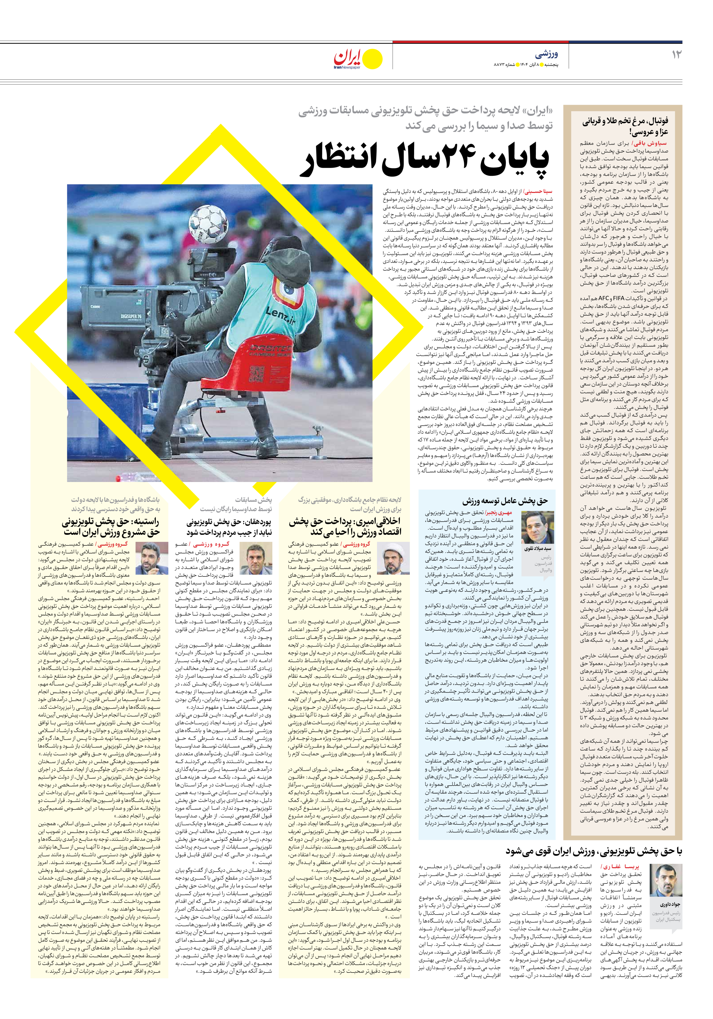 «ایران» لایحه پرداخت حق پخش تلویزیونی مسابقات ورزشی توسط صدا و سیما را بررسی میکند