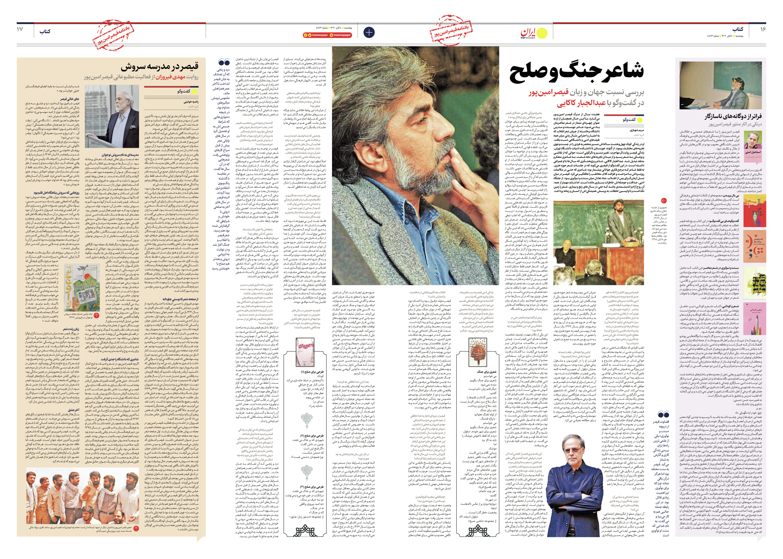 هجده سال از مرگ قیصر امینپور میگذرد، با این حال همچنان از او به عنوان چهرهای ممتاز در شعر معاصرمان یاد میشود؛ شاعر، نویسنده و مدرس دانشگاه برخاسته از جریان شعر انقلاب که به اعتبار و احترامی مثال زدنی میان همه طیفهای ادبی و دانشگاهی دست یافت. او در زندگی کوتاه چهلوهشت سالهاش مسیر منحصر به فردی را در جستوجوی تجربههای مختلف پیمود، از گُتوَند خوزستان تا دانشکده ادبیات دانشگاه تهران، زندگی قیصر روایتگر مهاجرت، تغییر مسیر و دگرگونی است؛ جوانی که از نقاشی و پزشکی به شعر رسید و از میدان تجربههای دهه شصت، به شاعری متفکر و منتقد تبدیل شد. عبدالجبار کاکایی، شاعر و پژوهشگری که سالها با او همراهی داشته است، در این گفتوگو از قیصری میگوید که در جلسات شعر حوزه هنری، نه فقط شاعر که مرجع فکری جوانانی بیشمار بود؛ شاعری که حتی در مکالمات روزمرهاش با صراحت و ظرافت کلام، مخاطب را غافلگیر میکرد. قیصر در میان نسل آرمانگرای پس از انقلاب، نماد تعادل میان سنت و نوآوری بود. از جایگاه ادبی، صداقت و حوصلهاش خاطرات بسیاری مانده است، اما شاید مهمتر از همه، آن روح آرام و اندیشمندی باشد که حتی در سالهای رنج و بیماری، شعر را زمین نگذاشت و تا واپسین لحظات، به پرسش همیشگیاش از انسان و زمانه پرداخت.