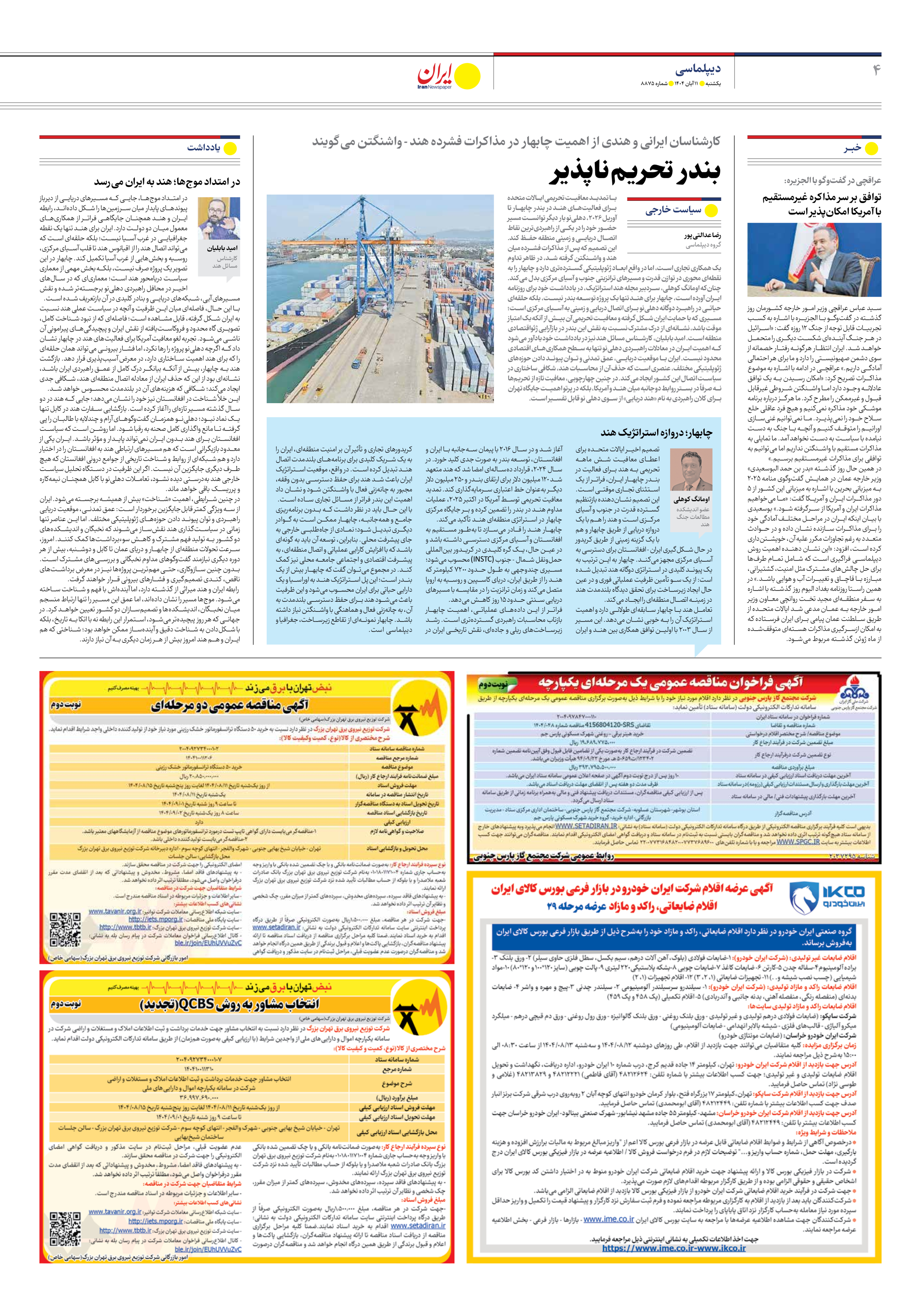 با تمدید معافیت تحریمی ایالات متحده برای فعالیتهای هند در بندر چابهار تا آوریل ۲۰۲۶، دهلینو بار دیگر توانست مسیر حضور خود را در یکی از راهبردیترین نقاط اتصال دریایی و زمینی منطقه حفظ کند. این تصمیم که پس از مذاکرات فشرده میان هند و واشنگتن گرفته شد، در ظاهر تداوم یک همکاری تجاری است، اما در واقع ابعاد ژئوپلیتیکی گستردهتری دارد و چابهار را به نقطهای محوری در توازن قدرت و مسیرهای ترانزیتی جنوب و آسیای مرکزی بدل میکند. چنانکه اومانگ کوهلی، سردبیر مجله هند استراتژیک، در یادداشت خود برای روزنامه ایران آورده است، چابهار برای هند تنها یک پروژه توسعه بندر نیست، بلکه حلقهای حیاتی در راهبرد دوگانه دهلینو برای اتصال دریایی و زمینی به آسیای مرکزی است؛ مسیری که با حمایت ایران شکل گرفته و معافیت تحریمی آن بیش از آنکه یک امتیاز موقت باشد، نشانهای از درک مشترک نسبت به نقش این بندر در بازآرایی ژئواقتصادی منطقه است. امید بابلیان، کارشناس مسائل هند نیز در یادداشت خود یادآور میشود که اهمیت ایران در معادلات راهبردی دهلینو تنها به سطح همکاریهای اقتصادی محدود نیست. ایران با موقعیت دریایی، عمق تمدنی و توان پیوند دادن حوزههای ژئوپلیتیکی مختلف، عنصری است که حذف آن از محاسبات هند، شکافی ساختاری در سیاست اتصال این کشور ایجاد میکند. در چنین چهارچوبی، معافیت تازه از تحریمها نه صرفاً در بستر روابط دوجانبه میان هند و آمریکا، بلکه در پرتو اهمیت جایگاه تهران برای کلان راهبردی به نام «هند دریایی» از سوی دهلی نو قابل تفسیر است.