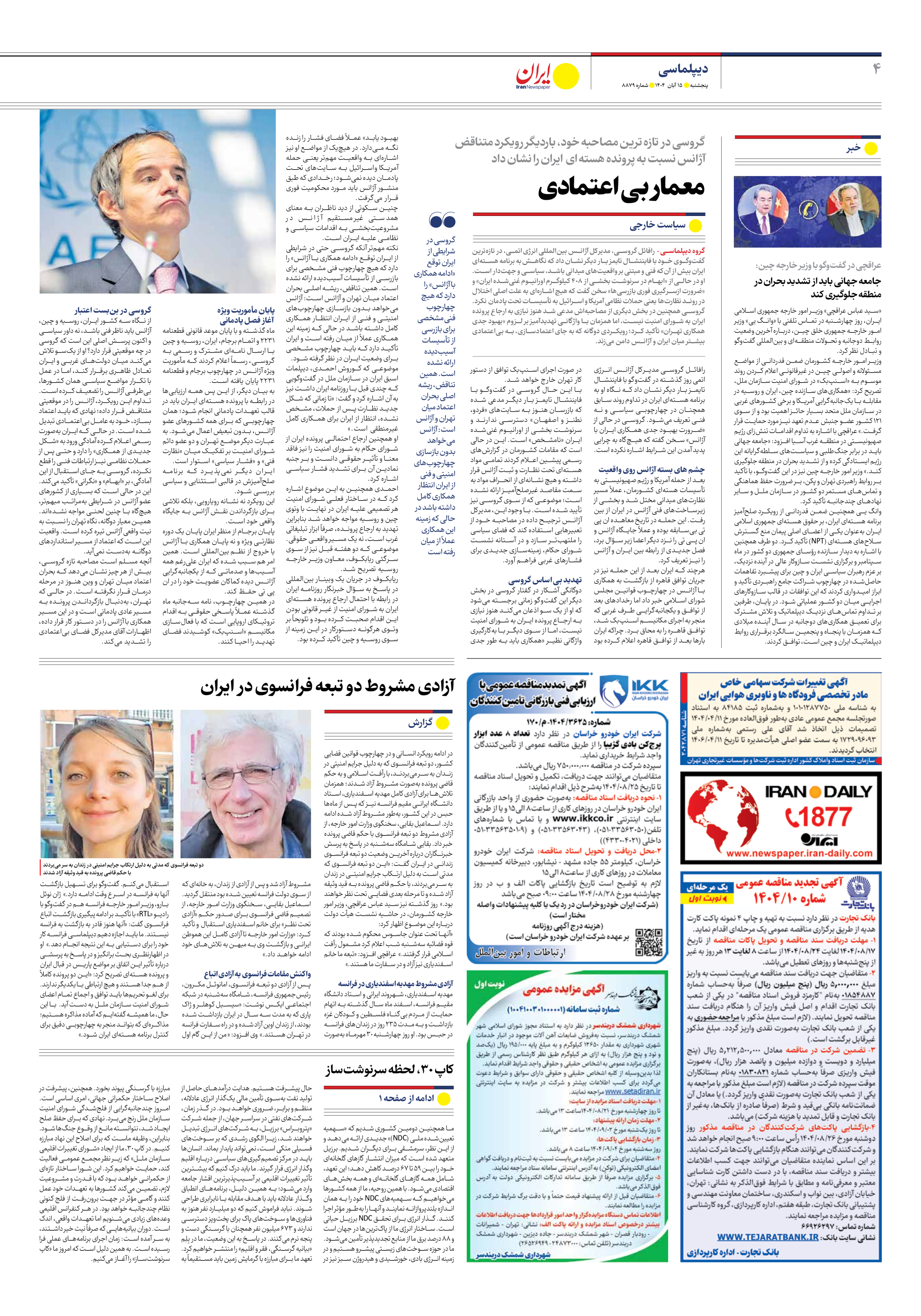 در ادامه رویکرد انسانی و در چهارچوب قوانین قضایی کشور، دو تبعه فرانسوی که به دلیل جرایم امنیتی در زندان به سر میبردند، با رأفت اسلامی و به حکم قاضی پرونده بهصورت مشروط آزاد شدند؛ همزمان تلاشها برای آزادی کامل مهدیه اسفندیاری، استاد دانشگاه ایرانی مقیم فرانسه نیز که پس از ماهها حبس در این کشور، بهطور مشروط آزاد شده ادامه دارد. اسماعیل بقایی، سخنگوی وزارت امور خارجه، از آزادی مشروط دو تبعه فرانسوی با حکم قاضی پرونده خبر داد. بقایی شامگاه سهشنبه در پاسخ به پرسش خبرنگاران درباره آخرین وضعیت دو تبعه فرانسوی زندانی در ایران گفت: «این دو تبعه فرانسوی که مدتی است به دلیل ارتکاب جرایم امنیتی در زندان به سر میبردند، با حکم قاضی پرونده به قید وثیقه آزاد شده و تا مرحله بعدی قضایی تحت نظر خواهند بود.» روز گذشته نیز سید عباس عراقچی، وزیر امور خارجه کشورمان، در حاشیه نشست هیأت دولت درباره این موضوع اظهار کرد: