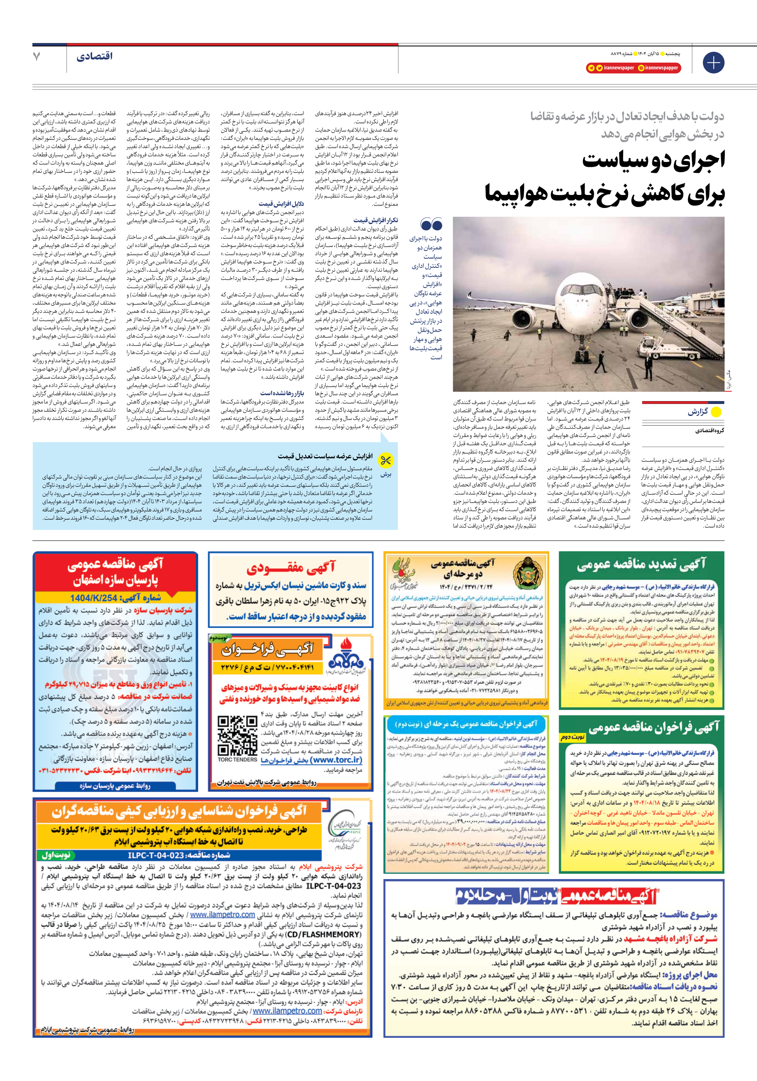 مقام مسئول سازمان هواپیمایی کشوری با تأکید بر اینکه سیاستهایی برای کنترل نرخ بلیت اجرا میشود گفت: «برای کنترل نرخها، در دنیا سیاستهای سمت تقاضا را دستکاری نمیکنند بلکه سیاستهای سمت عرضه باید تغییر کند، در هر کالا یا خدماتی اگر عرضه با تقاضا متعادل باشد یا حتی بیشتر از تقاضا باشد، خودبهخود نرخها تعدیل میشود، کمبود عرضه همیشه خود عاملی برای افزایش قیمت است، سازمان هواپیمایی کشوری نیز در دولت چهاردهم همین سیاست را در پیش گرفته است علاوه بر صنعت پشتیبان، نوسازی و واردات هواپیما با هدف افزایش صندلی پروازی در حال انجام است.