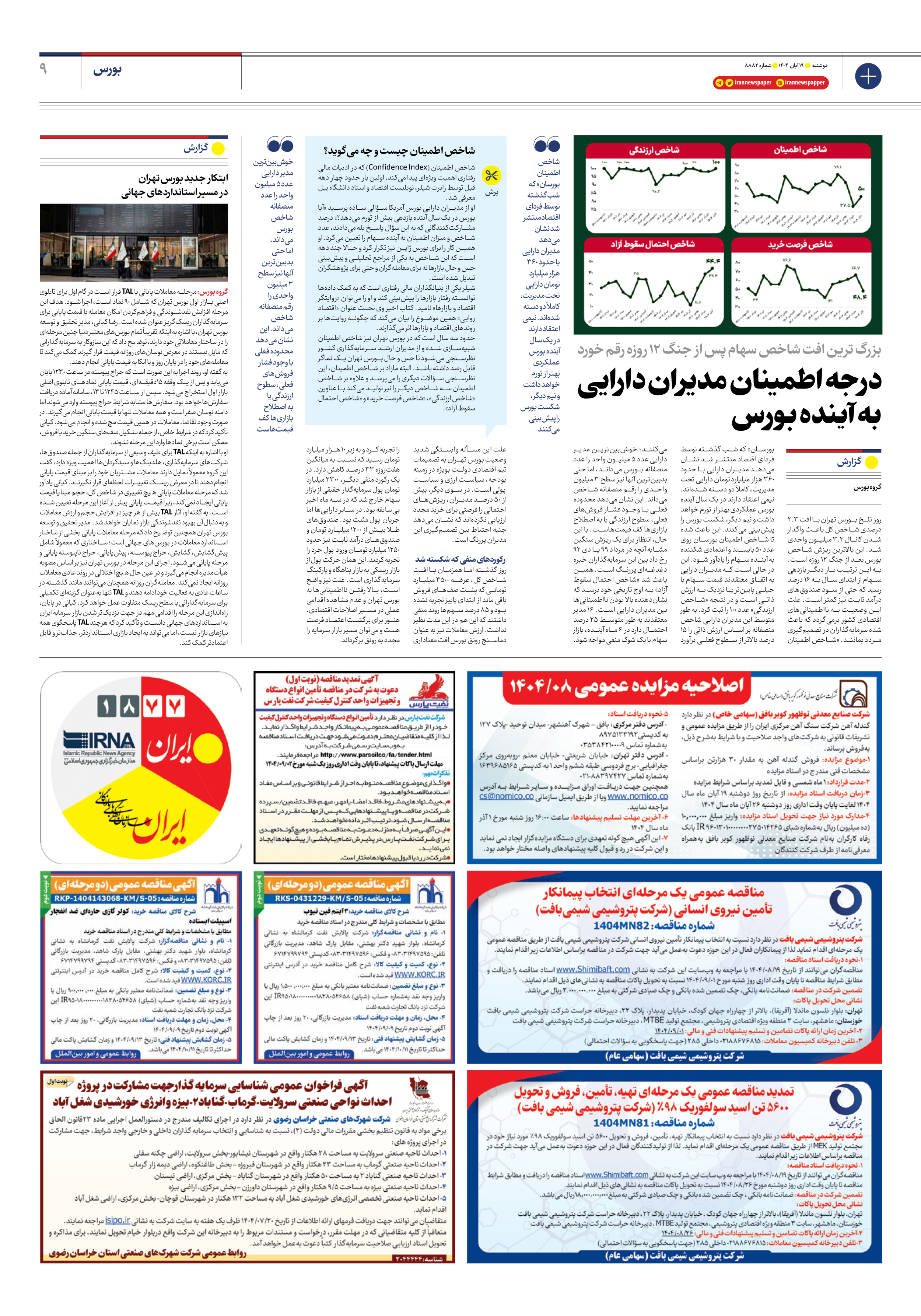 حدود سه سال است که در بورس تهران نیز شاخص اطمینان شبیهسازی شده و از مدیران ارشد سرمایهگذاری کشور نظرسنجی میشود تا حس و حال بورس تهران یک نماگر قابل رصد داشته باشد. البته مازاد بر شاخص اطمینان، این نظرسنجی سؤالات دیگری را میپرسد و علاوه بر شاخص اطمینان سه شاخص دیگر را نیز تولید میکند با عناوین «شاخص ارزندگی»، «شاخص فرصت خرید» و «شاخص احتمال سقوط آزاد».