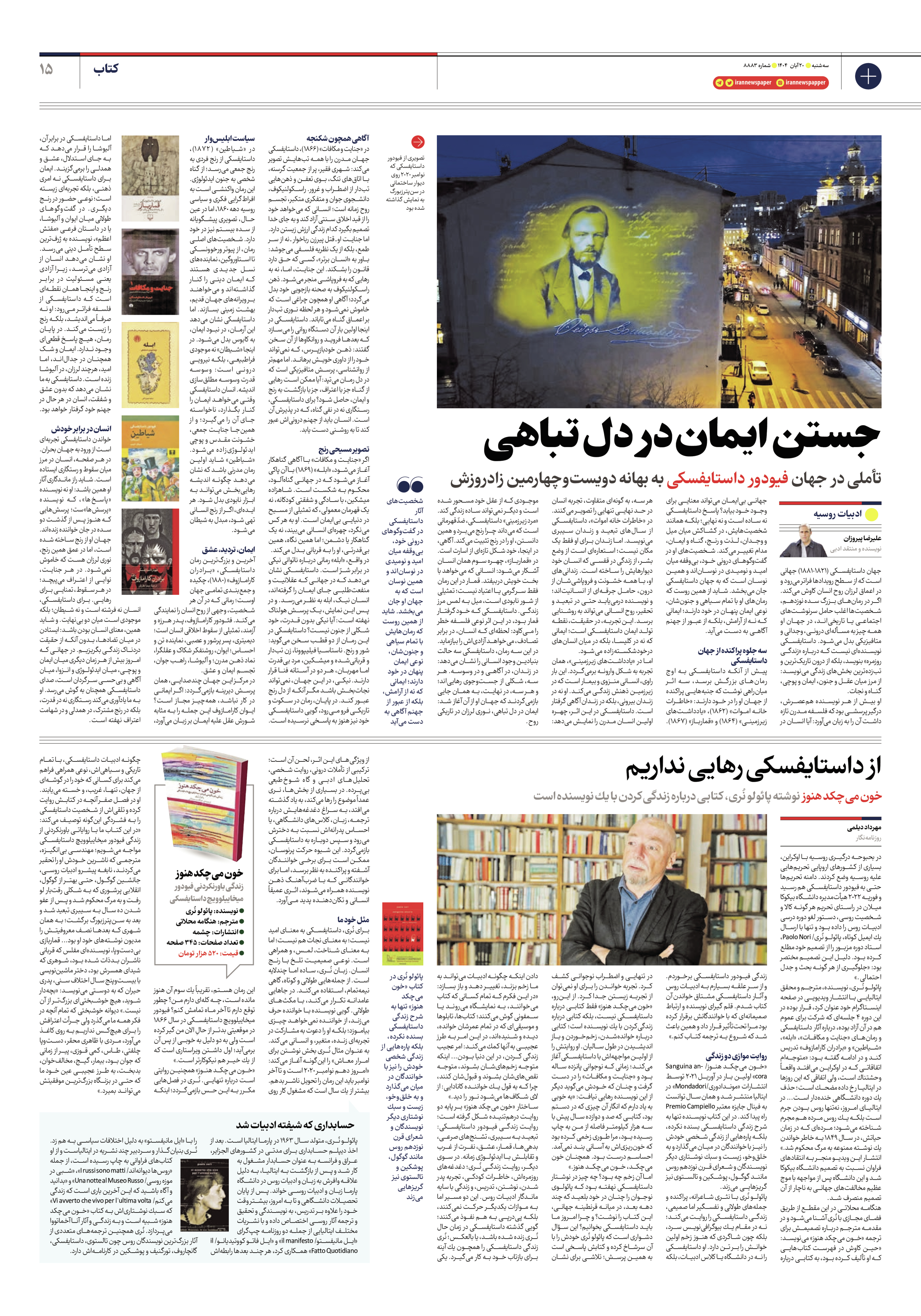 خواندن داستایفسکی تجربهای است از ورود به جهان بحران. در هر صفحه، انسان در مرز میان سقوط و رستگاری ایستاده است. شاید راز ماندگاری آثار او همین باشد: او نه نویسنده «پاسخها»، که نویسنده «پرسشها»ست؛ پرسشهایی که هنوز پس از گذشت دو سده در جان خواننده زندهاند. جهان او از رنج ساخته شده است، اما در عمق همین رنج، نوری لرزان هست که خاموش نمیشود. در هر جنایت، نوایی از اعتراف میپیچد؛ در هر سقوط، تمنایی برای رهایی. برای داستایفسکی، انسان نه فرشته است و نه شیطان؛ بلکه موجودی است میان دو بینهایت. و شاید همین، معنای انسان بودن باشد: ایستادن در میان تضادها، بدون آنکه از حقیقت دردناک زندگی بگریزیم. در جهانی که امروز بیش از هر زمان دیگری میان ایمان و پوچی، میان ایدئولوژی و انزوا، میان آگاهی و بیحسی سرگردان است، صدای داستایفسکی همچنان به گوش میرسد. او به ما یادآوری میکند رستگاری نه در قدرت، بلکه در رنج مشترک، در همدلی و در شهامت اعتراف نهفته است.