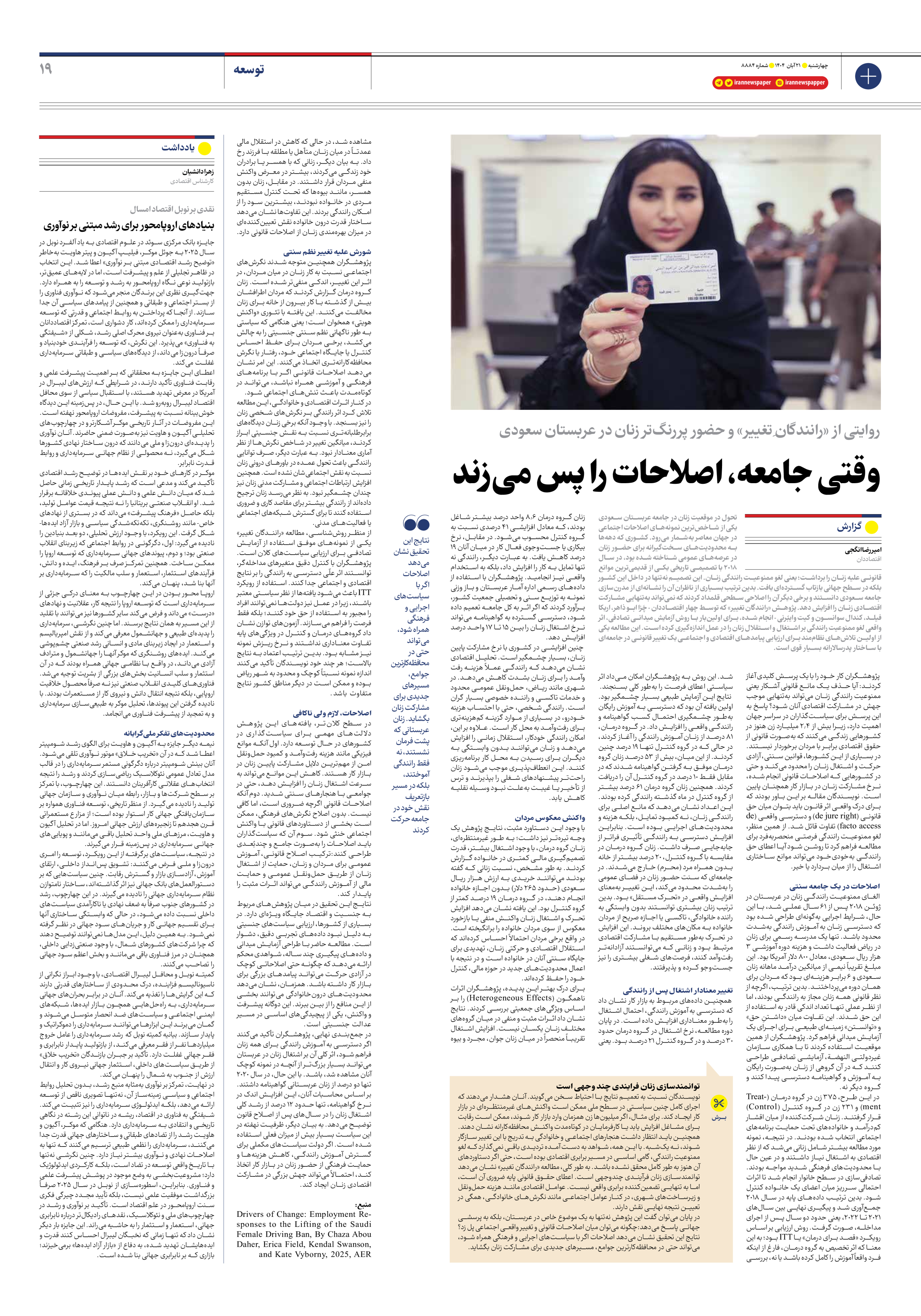 تحول در موقعیت زنان در جامعه عربستان سعودی یکی از شاخصترین نمونههای اصلاحات اجتماعی در جهان معاصر بهشمار میرود. کشوری که دههها به محدودیتهای سختگیرانه برای حضور زنان در عرصههای عمومی شناخته شده بود، در سال ۲۰۱۸ با تصمیمی تاریخی یکی از قدیمیترین موانع قانونی علیه زنان را برداشت؛ یعنی لغو ممنوعیت رانندگی زنان. این تصمیم نهتنها در داخل این کشور بلکه در سطح جهانی بازتاب گستردهای یافت. بدین ترتیب بسیاری از ناظران آن را نشانهای از مدرنسازی جامعه سعودی دانستند و برخی دیگر آن را اصلاحی سطحی قلمداد کردند که نمیتواند بهتنهایی مشارکت اقتصادی زنان را افزایش دهد. پژوهش «رانندگان تغییر» که توسط چهار اقتصاددان - چَزا ابو ذاهر، اریکا فیلد، کندال سوانسون و کیت وایبُرنی - انجام شده، برای اولینبار با روش آزمایش میدانی تصادفی، اثر واقعی لغو ممنوعیت رانندگی بر اشتغال و استقلال زنان را در عمل اندازهگیری کرده است. این مطالعه یکی از اولین تلاشهای نظاممند برای ارزیابی پیامدهای اقتصادی و اجتماعی یک تغییر قانونی در جامعهای با ساختار پدرسالارانه بسیار قوی است.