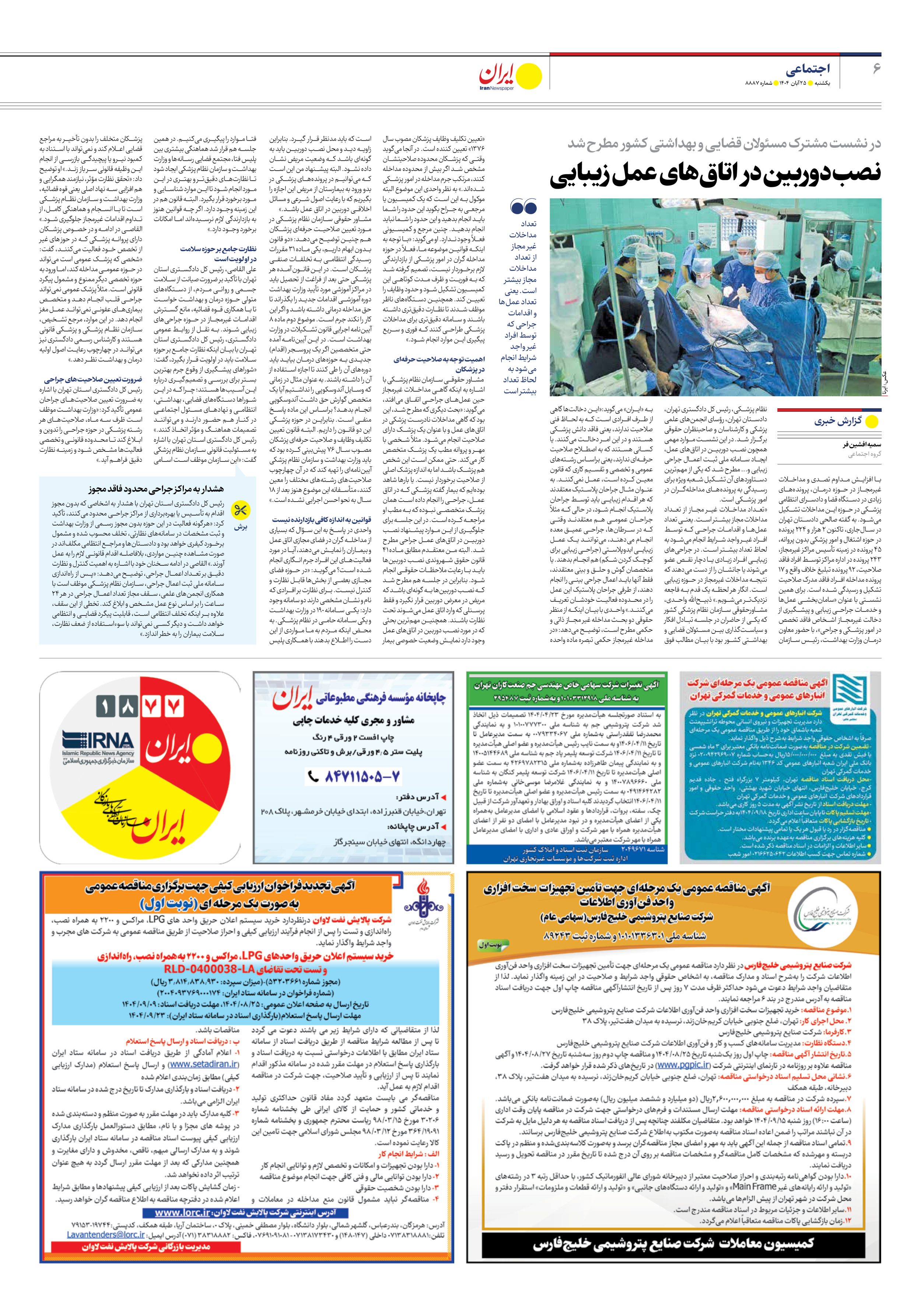 رئیس کل دادگستری استان تهران با اشاره به ضرورت تعیین صلاحیتهای جراحان عمومی تأکید کرد: «وزارت بهداشت موظف است ظرف سه ماه، صلاحیتهای هر رشته پزشکی در حوزه جراحی را تدوین و ابلاغ کند تا محدوده قانونی و تخصصی فعالیتها مشخص شود و زمینه نظارت دقیق فراهم آید.»