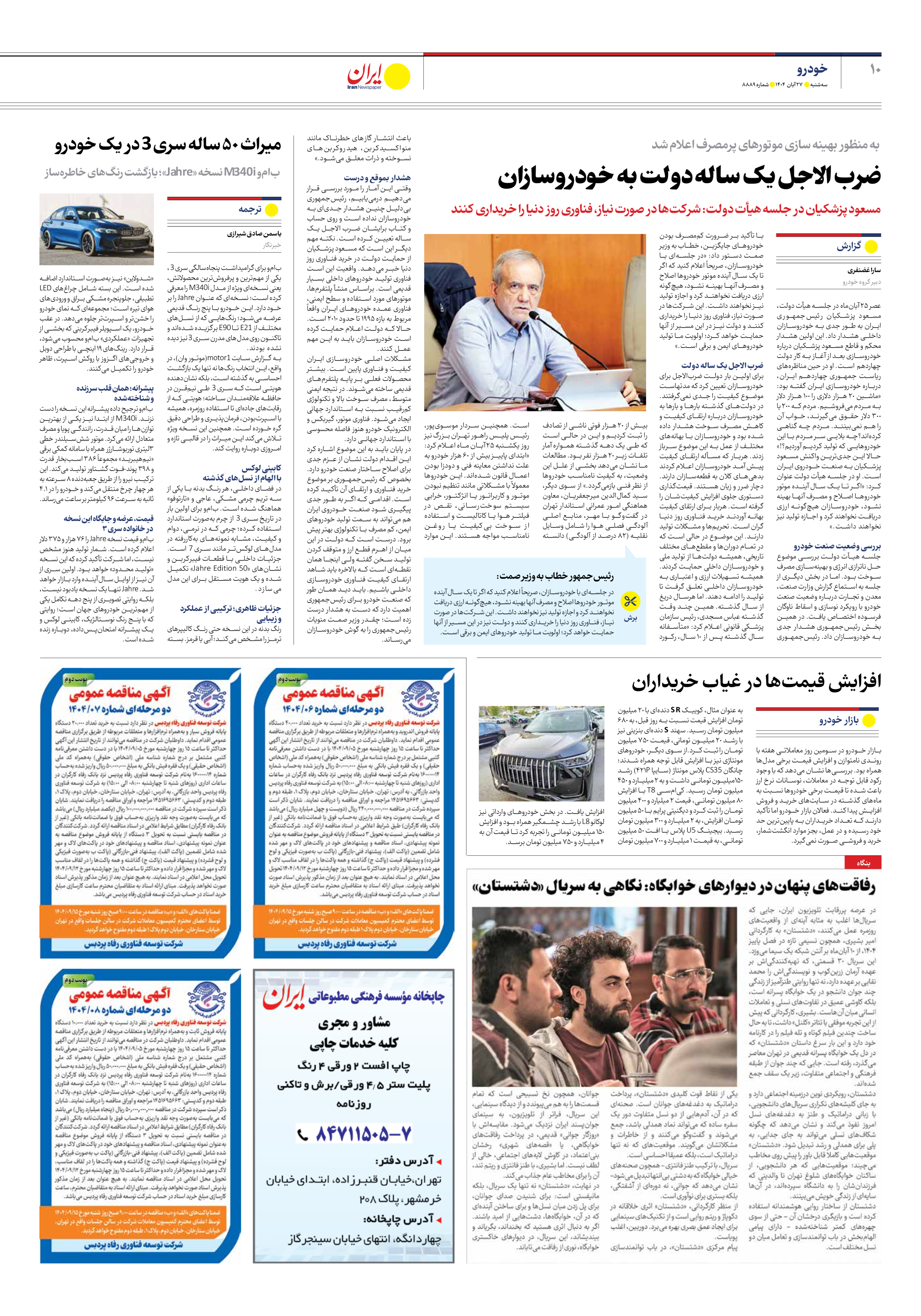 به عنوان مثال، کوییک SR دندهای با ۲۰ میلیون تومان افزایش قیمت نسبت به روز قبل، به ۶۸۰ میلیون تومان رسید. سهند S دندهای بنزینی نیز با رشد ۲۰ میلیون تومانی، قیمت ۷۵۰ میلیون تومان را ثبت کرد.از سوی دیگر، خودروهای مونتاژی نیز با افزایش قابل توجه همراه شدند؛ چانگان CS35 پلاس مونتاژ (سایپا ۴۲۱P) رشد ۱۵۰میلیون تومانی داشت و به ۲ میلیارد و ۴۵۰ میلیون تومان رسید. کیامسی T8 با افزایش ۸۰ میلیون تومانی، قیمت ۲ میلیارد و ۴۰۰ میلیون تومان را ثبت کرد و دیگنیتی پرایم با ۵۰ میلیون تومان افزایش، به ۲ میلیارد و ۳۰۰ میلیون تومان رسید. بیجینگ U5 پلاس با افت ۵۰ میلیون تومانی، به قیمت ۱ میلیارد و ۷۰۰ میلیون تومان افزایش یافت. در بخش خودروهای وارداتی نیز لوکانو L8 با رشد چشمگیر همراه بود و افزایش ۱۵۰ میلیون تومانی را تجربه کرد تا قیمت آن به ۴ میلیارد و ۷۵۰ میلیون تومان برسد.