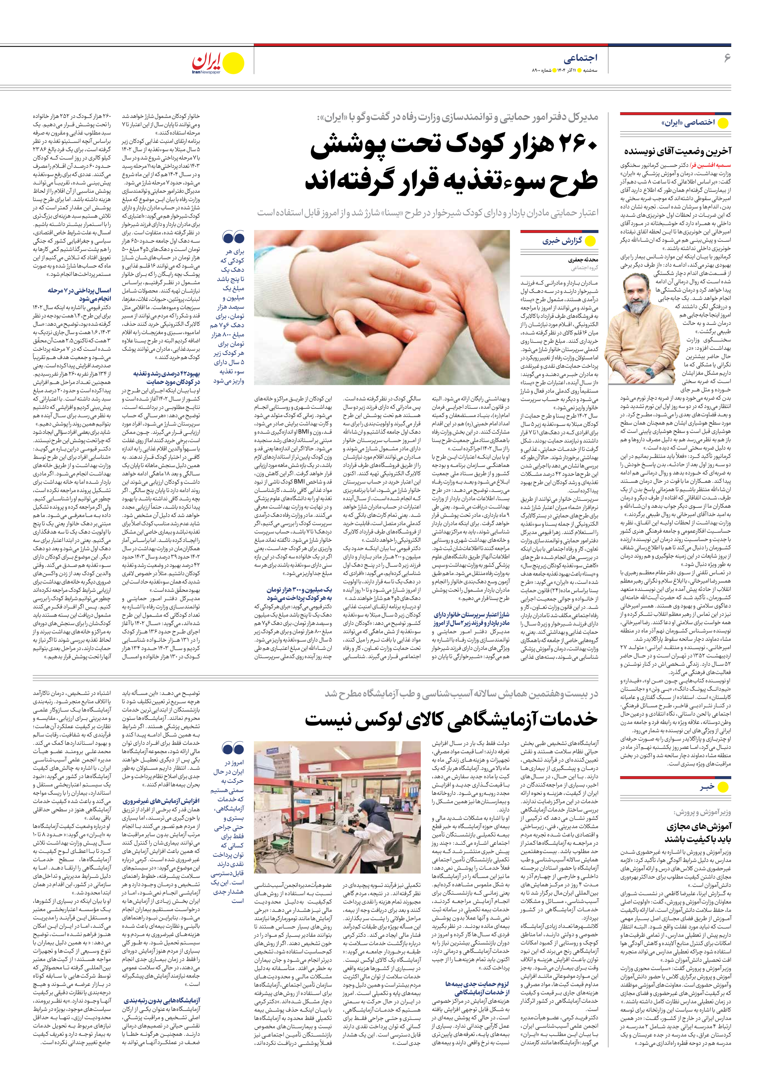 260 هزار کودک تحت پوشش طرح سوءتغذیه قرار گرفتهاند