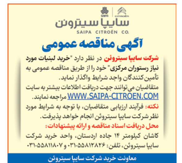 متقاضیان میتوانند جهت دریافت اطلاعات بیشتر به سایت WWW.SAIPA-CITROEN.COM مراجعه نمایند.