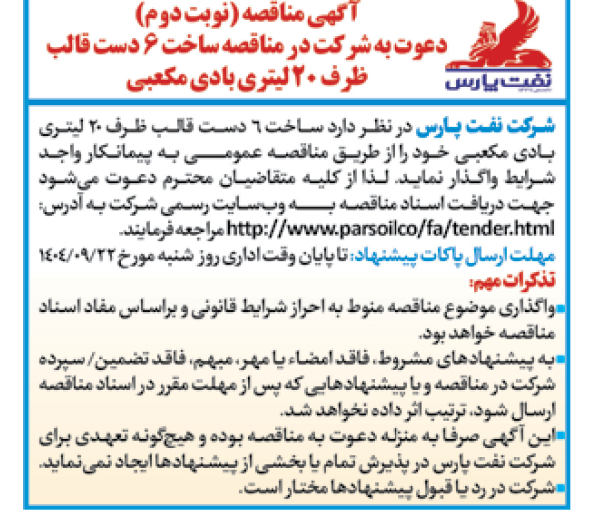 در حافظه موقت ذخیره شد... تصویر مناقصه شرکت نفت پارس ۱۵ آذر ۱۴۰۴ شماره هشت هزار و نهصد و سه - صفحه ۲۰