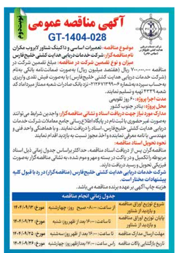 شرکت خدمات دریایی هدایت کشتی خلیجفارس (مناقصهگزار) در رد یا قبول کلیه پیشنهادات مختار است.