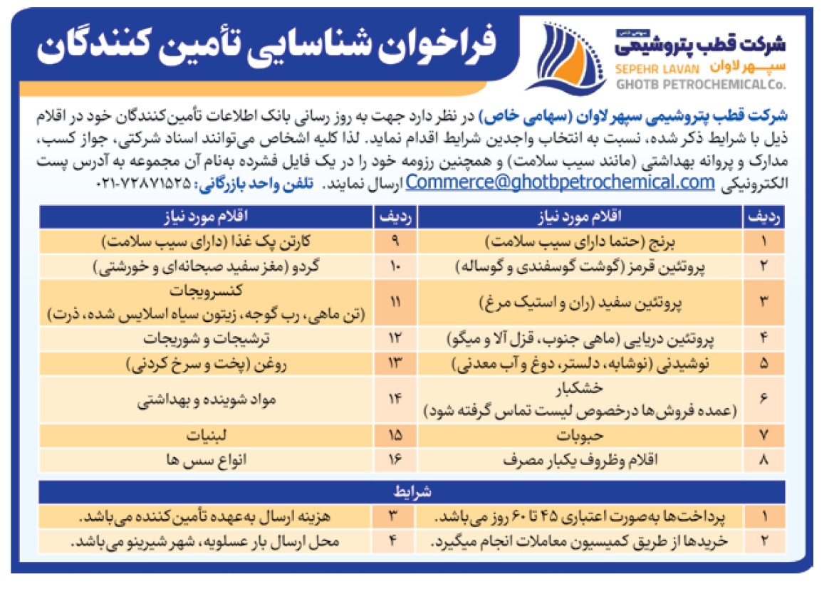 در حافظه موقت ذخیره شد... تصویر فراخوان شرکت قطب پتروشیمی سپهر لاوان ۱۵ آذر ۱۴۰۴ شماره هشت هزار و نهصد و سه - صفحه ۴