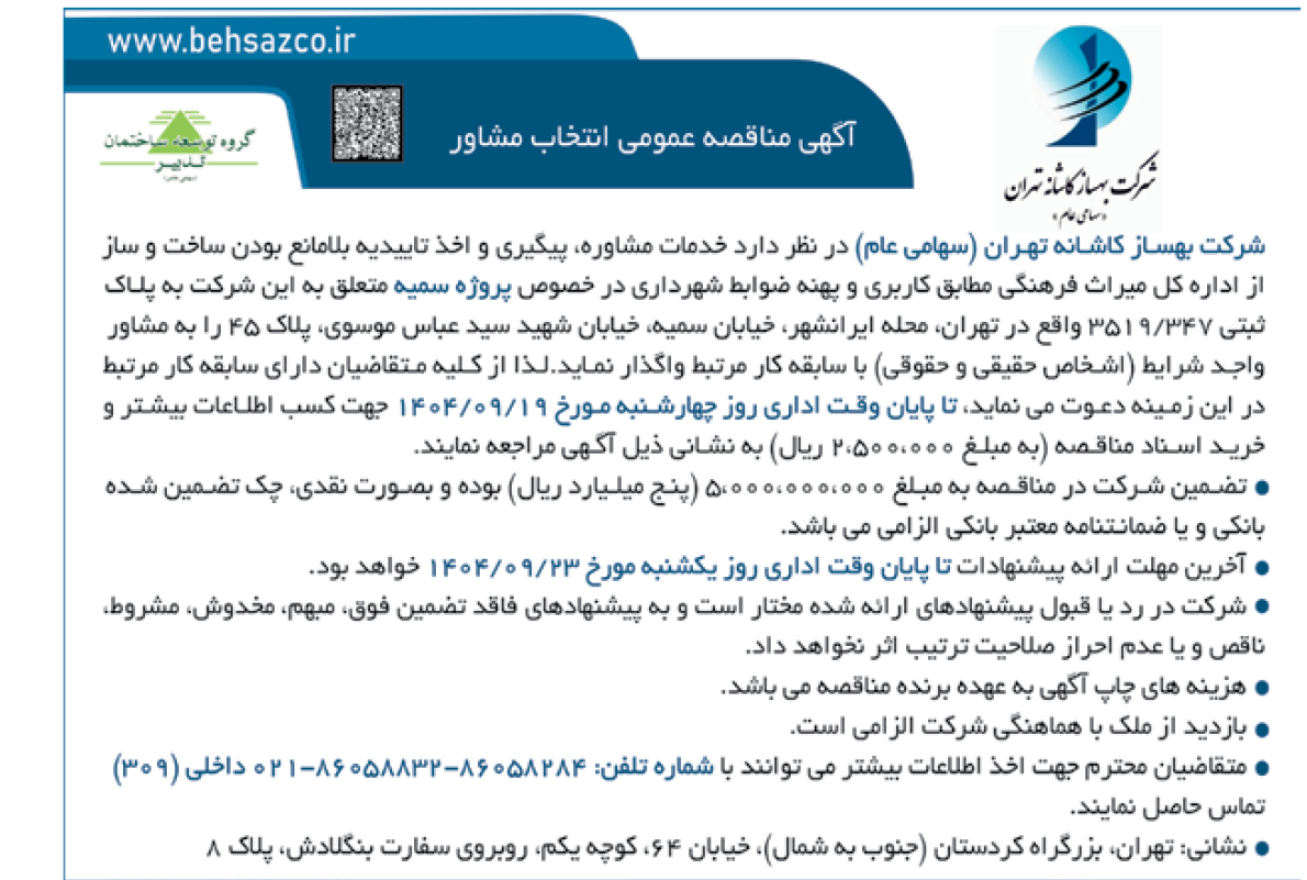 در حافظه موقت ذخیره شد... تصویر مناقصه شرکت بهساز کاشانه تهران ۱۵ آذر ۱۴۰۴ شماره هشت هزار و نهصد و سه - صفحه ۷