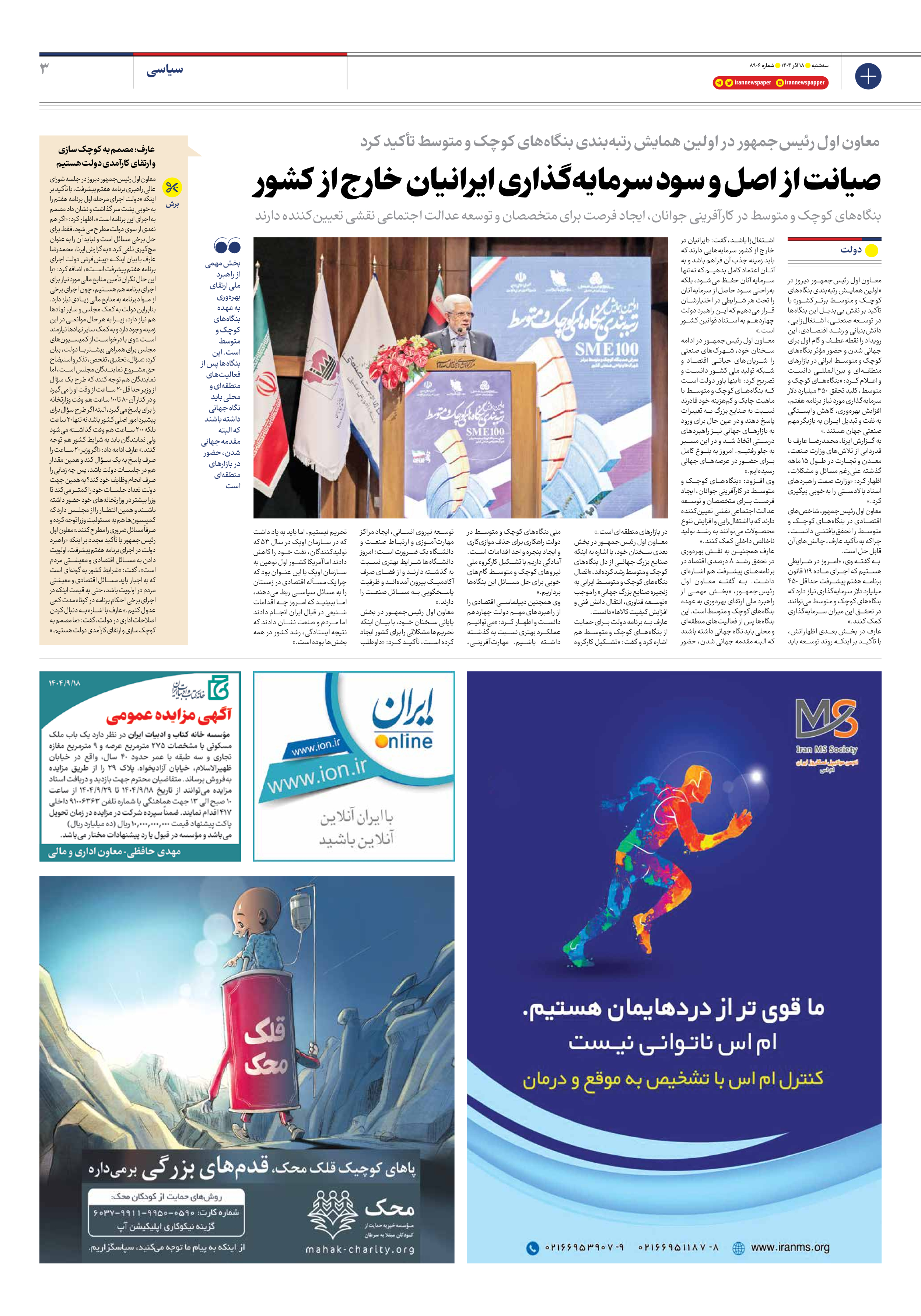 عارف همچنین به نقش بهرهوری در تحقق رشد ۸ درصدی اقتصاد در برنامههای پیشرفت هم اشارهای داشت. به گفته معاون اول رئیسجمهور، «بخش مهمی از راهبرد ملی ارتقای بهرهوری به عهده بنگاههای کوچک و متوسط است. این بنگاهها پس از فعالیتهای منطقهای و محلی باید نگاه جهانی داشته باشند که البته مقدمه جهانی شدن، حضور در بازارهای منطقهای است.»