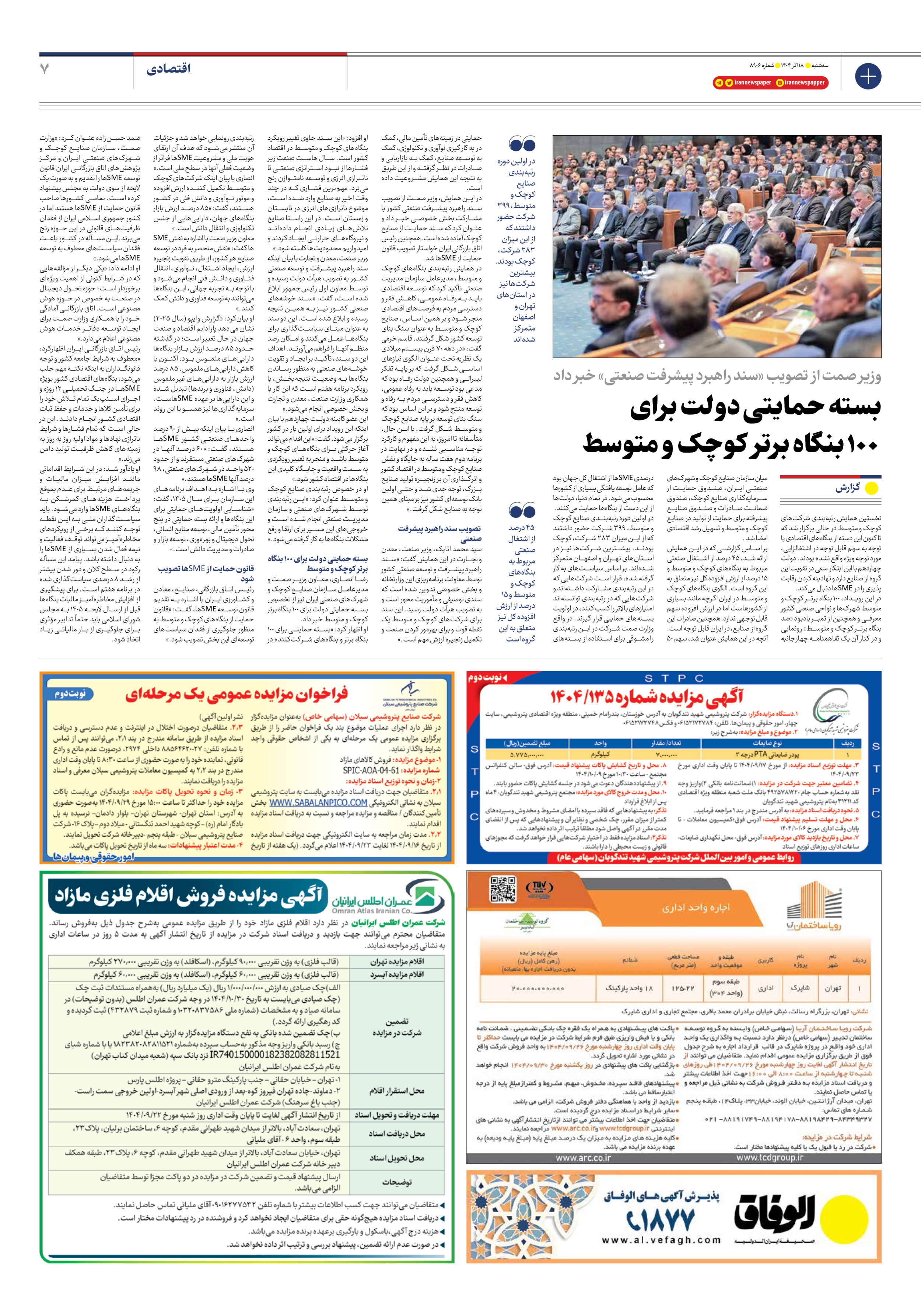 رضا انصاری، معاون وزیر صمت و مدیرعامل سازمان صنایع کوچک و شهرکهای صنعتی ایران نیز از تخصیص بسته حمایتی دولت برای ۱۰۰ بنگاه برتر کوچک و متوسط خبر داد.