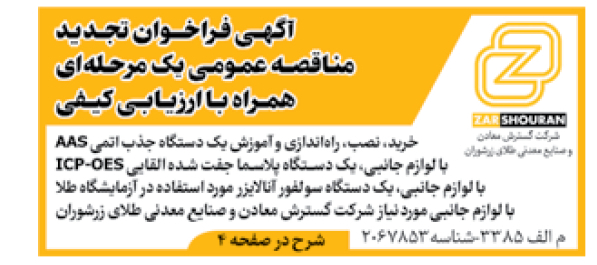 آگهــی فـراخـــوان تجــدیـد منـاقصــه عمـومـی یک مرحـلهای همــراه بــا ارزیــابــی کیــفی