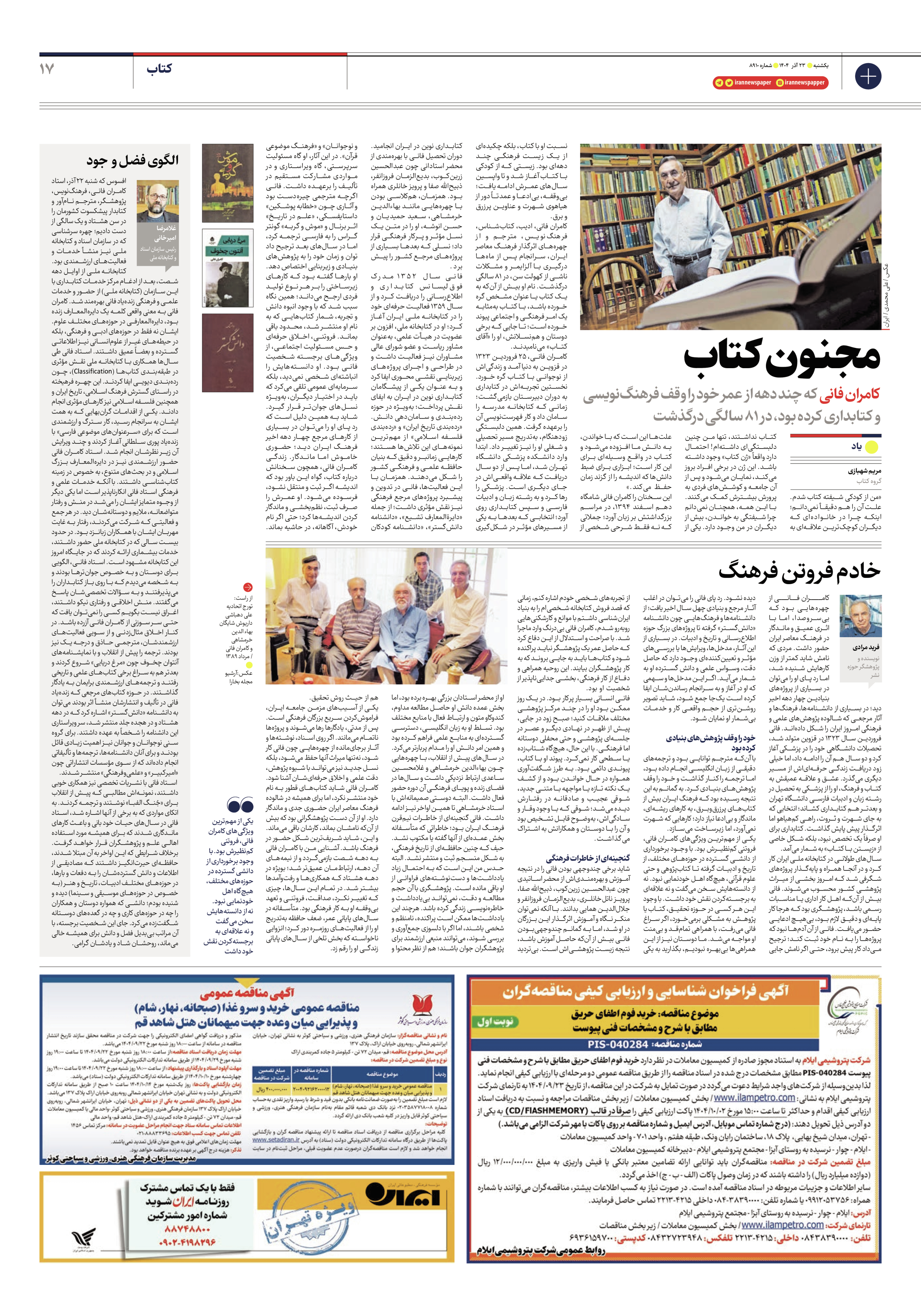 افسوس که شنبه ۲۲ آذر، استاد کامران فانی، فرهنگنویس، پژوهشگر، مترجم نامآور و کتابدار پیشکسوت کشورمان را در سن هشتاد و یک سالگی از دست دادیم؛ چهره سرشناسی که در سازمان اسناد و کتابخانه ملی نیز منشأ خدمات و فعالیتهای ارزشمندی بود.