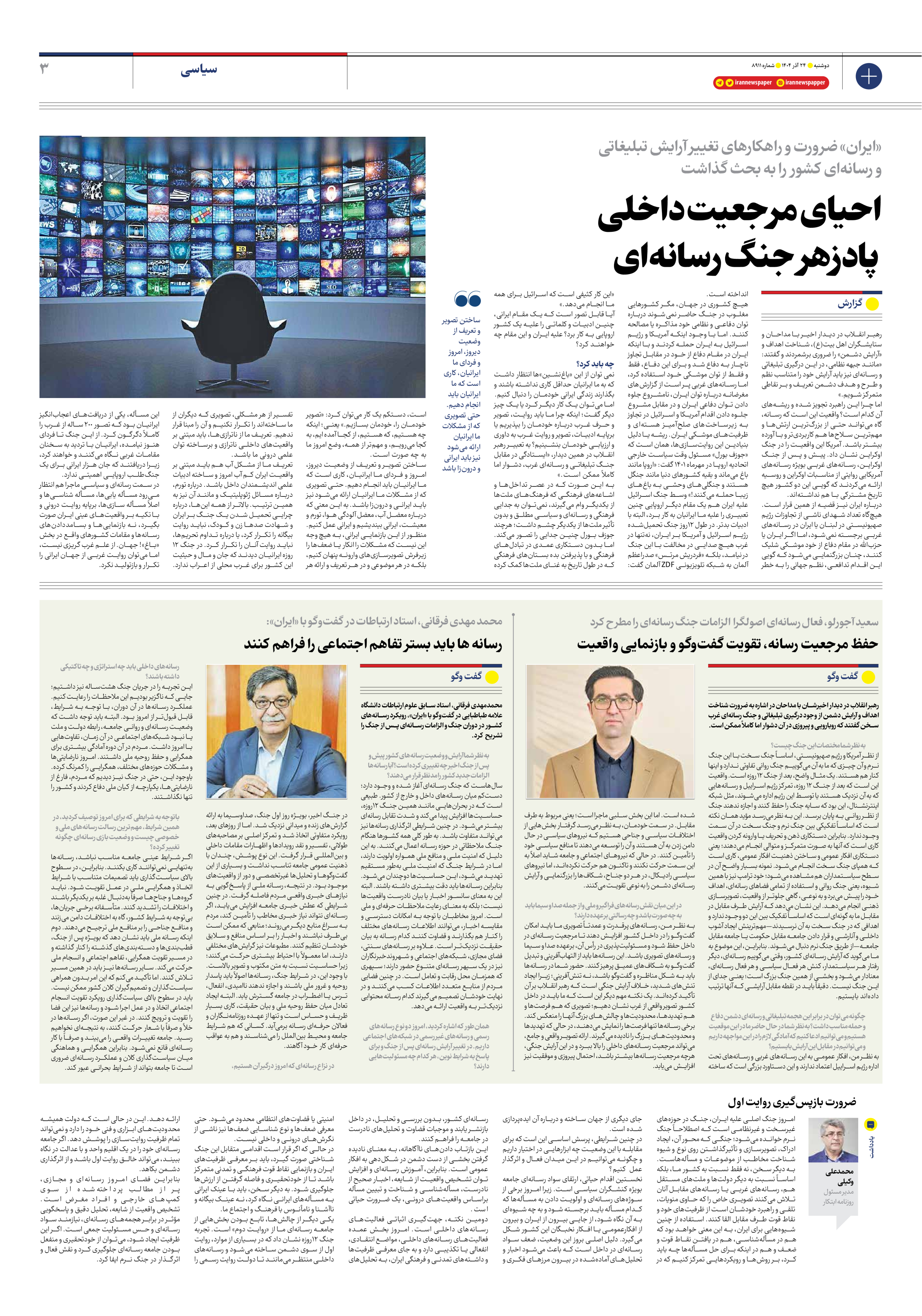 در جنگ اخیر، بویژه روز اول جنگ، صداوسیما به ارائه گزارشهای زنده و میدانی نزدیک شد. اما از روزهای بعد، رویکرد متفاوتی اتخاذ شد و تمرکز اصلی بر مصاحبههای طولانی، تفسیر و نقد رویدادها و اظهارات مقامات داخلی و بینالمللی قرار گرفت. این نوع پوشش، چندان با ذهنیت عمومی جامعه تناسب نداشت و بسیاری از این گفتوگوها و تحلیلها غیرتخصصی و دور از واقعیتهای موجود بود. در نتیجه، رسانه ملی از پاسخگویی به نیازهای خبری واقعی مردم فاصله گرفت. در چنین شرایطی که عطش خبری جامعه افزایش مییابد، اگر رسانهای نتواند نیاز خبری مخاطب را تأمین کند، مردم به سراغ منابع دیگر میروند؛ منابعی که ممکن است بیطرف نباشند و اخبار را بر اساس منافع و سلایق خودشان تنظیم کنند. مطبوعات نیز گرایشهای مختلفی دارند، اما معمولاً با احتیاط بیشتری حرکت میکنند؛ زیرا حساسیت نسبت به متن مکتوب و تصویر بالاست. با وجود این، در شرایط جنگ، رسانهها اصولاً باید پاسدار روحیه و غرور ملی باشند و اجازه ندهند ناامیدی، انفعال، ترس یا اضطراب در جامعه گسترش یابد. البته ایجاد تعادل میان حفظ روحیه ملی و بیان حقیقت، کاری بسیار ظریف و حساس است و تنها از عهده روزنامهنگاران و فعالان حرفهای رسانه برمیآید. کسانی که هم شرایط جامعه و محیط بینالملل را میشناسند و هم به عواقب حرفهای کار خود آگاهند.