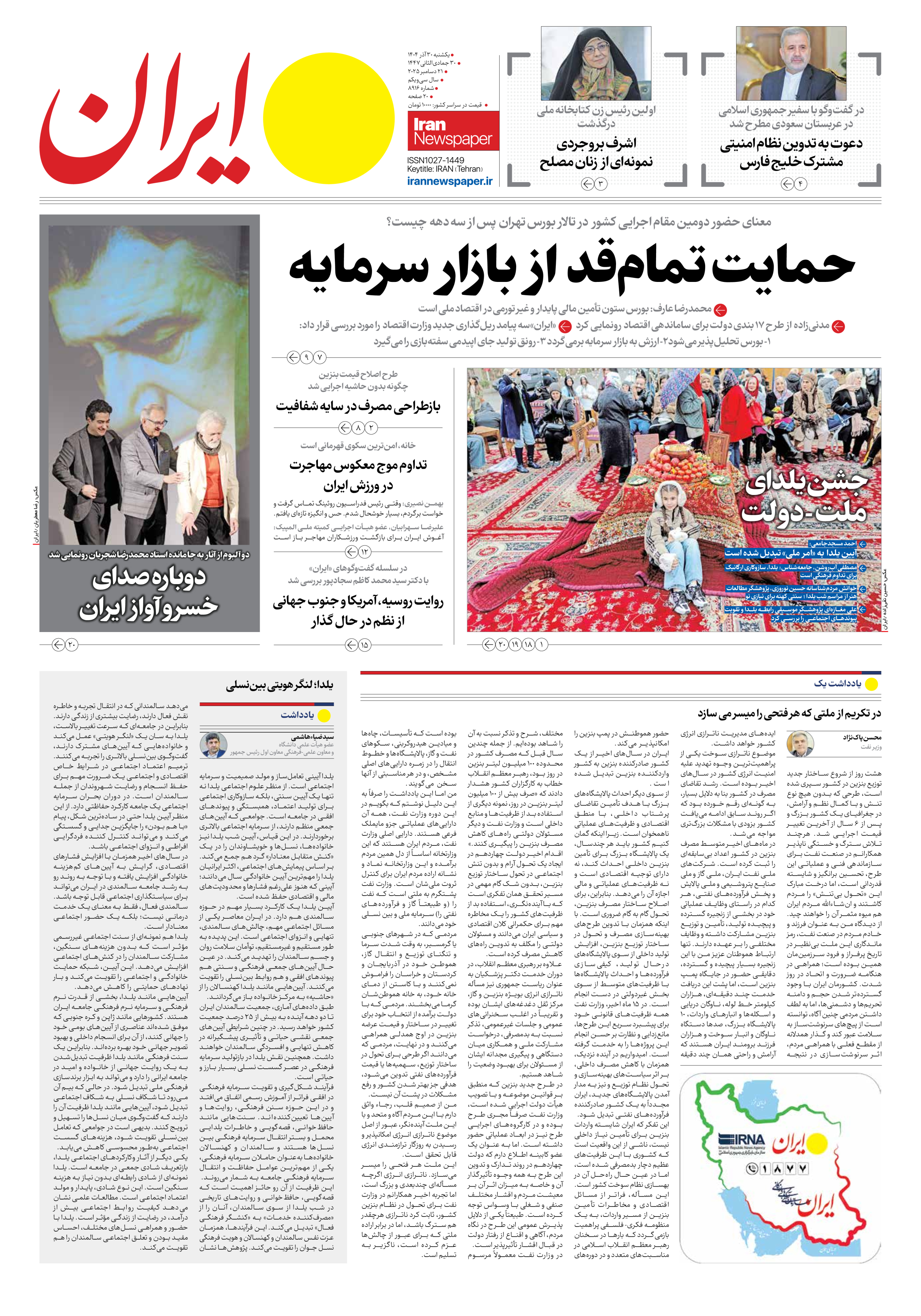 محمدرضا عارف: بورس ستون تأمین مالی پایدار و غیر تورمی در اقتصاد ملی است مدنیزاده از طرح ۱۷ بندی دولت برای ساماندهی اقتصاد رونمایی کرد «ایران»سه پیامد ریلگذاری جدید وزارت اقتصاد را مورد بررسی قرار داد: ۱- بورس تحلیلپذیر میشود۲- ارزش به بازار سرمایه برمیگردد ۳- رونق تولید جای اپیدمی سفتهبازی را میگیرد