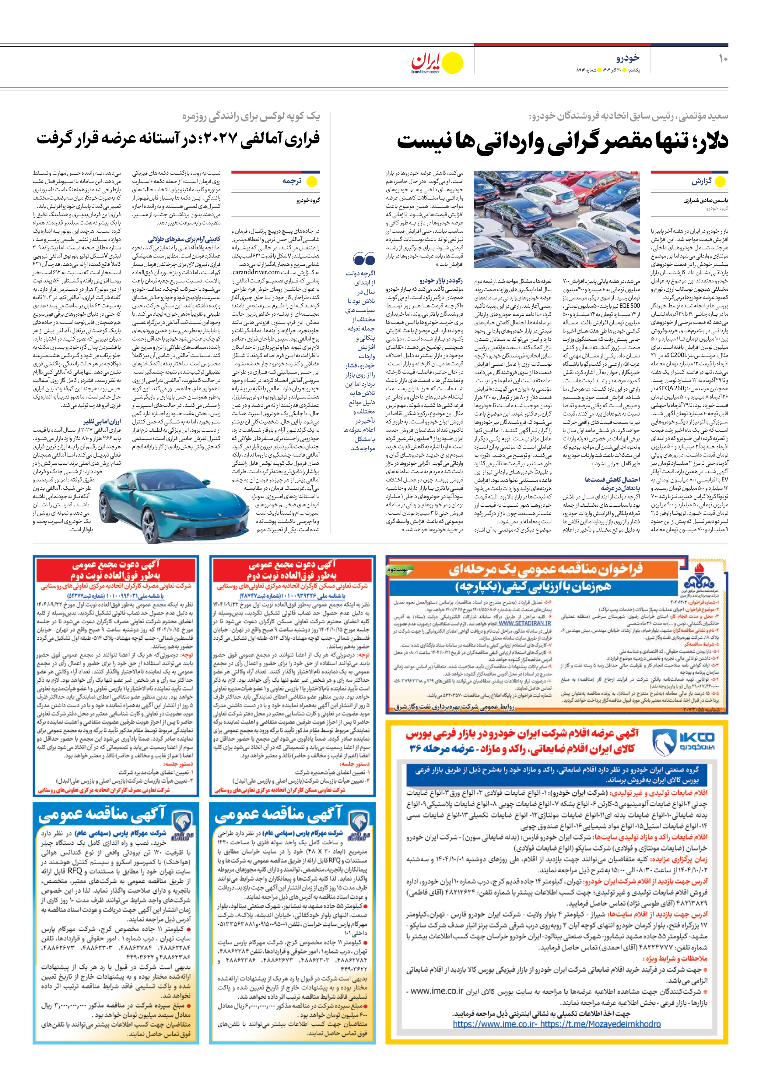 بررسیهای انجامشده توسط خبرنگار ما در بازه زمانی ۱۹ تا ۲۹ آذرماه نشان میدهد که قیمت برخی از خودروهای وارداتی در پلتفرمهای خریدوفروش بین۱۰۰ میلیون تومان تا 1 میلیارد و 500 میلیون تومان افزایش یافته است. برای مثال، مرسدسبنز C200L که در ۲۳ آذرماه با قیمت ۱۲ میلیارد تومان معامله میشد، تنها در فاصله کمتر از یک هفته و تا ۲۹ آذرماه به ۱۳ میلیارد تومان رسید.همچنین مرسدسبنز EQA 260 که در ۲۶ آذرماه ۸ میلیارد و ۵۰۰ میلیون تومان قیمت خورده بود، تا ۲۹ آذرماه با جهشی قابل توجه ۱۰ میلیارد تومان آگهی شد. سوزوکی بالنو نیز از دیگر خودروهایی است که طی یک ماه اخیر رشد قیمت را تجربه کرده؛ این خودرو که در ابتدای آذرماه حدوداً ۲ میلیارد و ۵۰۰ میلیون تومان قیمت داشت، در روزهای پایانی آذرماه حتی تا مرز ۳ میلیارد تومان نیز آگهی شد. در همین بازه، قیمت آواتار EV با افزایشی ۸۰۰ میلیون تومانی به ۱۲ میلیارد و ۵۰۰ میلیون تومان رسید و تویوتا کرولا کراس هیبرید نیز با رشد ۷۰۰ میلیون تومانی، ۵ میلیارد و ۹۰۰ میلیون تومان قیمت خورد. تویوتا راوفور 2.5 لیتر دو دیفرانسیل که پیش از این حدود 9 میلیارد و 700 میلیون تومان معامله میشد، در هفته پایانی پاییز با افزایش ۷۰۰ میلیون تومانی به 10 میلیارد و 400میلیون تومان رسید. از سوی دیگر، مرسدسبنز EQE 500 نیز با رشد ۵۰۰میلیون تومانی، از ۱۴ میلیارد تومان به ۱۴ میلیارد و ۵۰۰ میلیون تومان افزایش یافت. مسأله گرانی خودروها طی هفتههای اخیر تا جایی پیش رفت که سخنگوی وزارت صمت نیز روز گذشته به آن واکنش نشان داد. یکی از مسائل مهمی که عزت الله زارعی در گفتوگو با باشگاه خبرنگاران جوان به آن اشاره کرد، نقش کمبود عرضه در رشد قیمتهاست. زارعی در این باره گفت: «بههرحال، ما شاهد افزایش قیمت خودرو هستیم و طبیعی است که وقتی عرضه و تقاضا نسبت به هم تعادل پیدا میکنند، قیمت نیز به سمت قیمتهای واقعی حرکت خواهد کرد. در ششماهه اول سال با برخی ابهامات در خصوص تعرفه واردات و نحوه اجراییشدن آن مواجه بودیم که این مشکلات باعث شد واردات خودرو به طور کامل اجرایی نشود.»