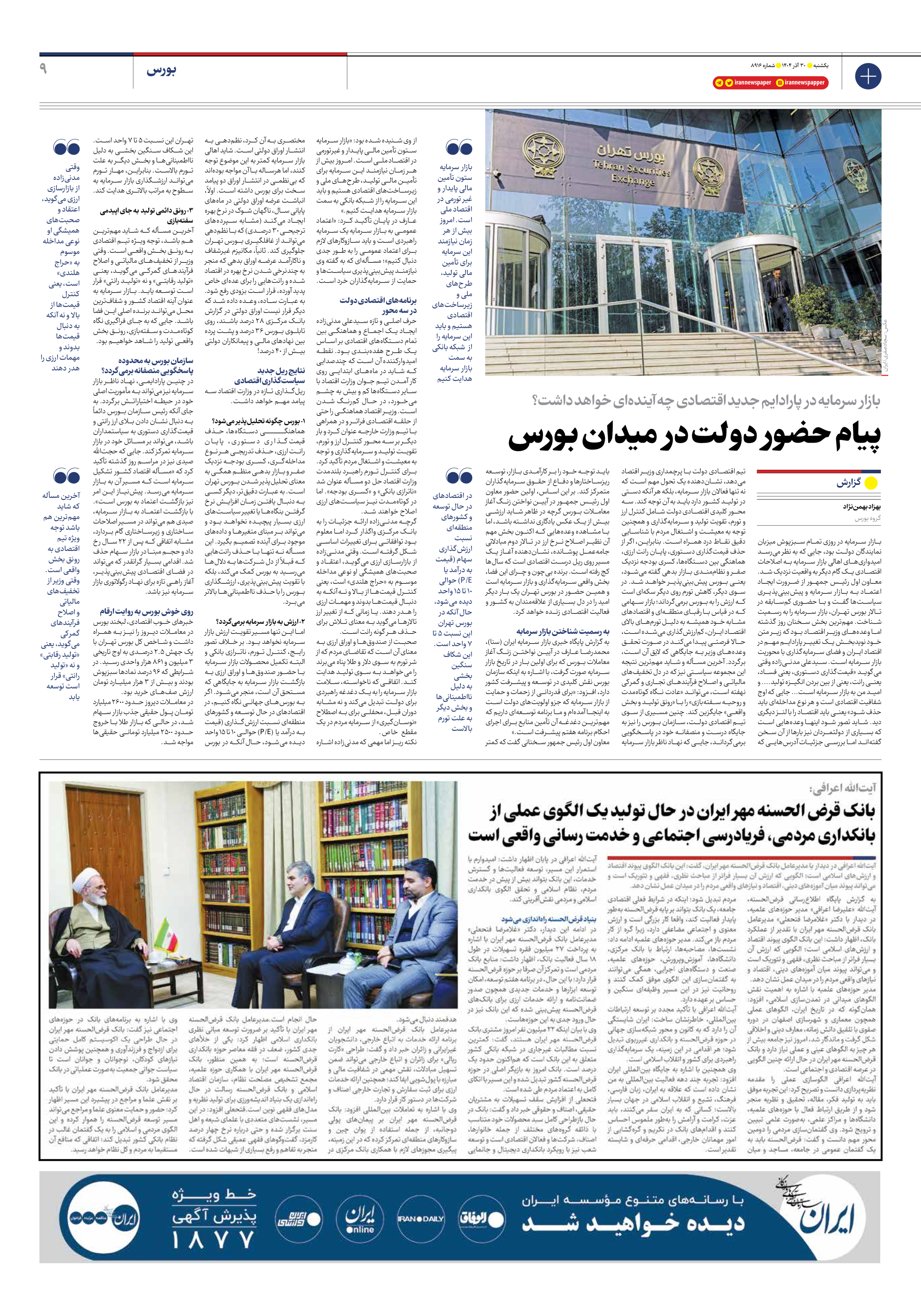 بازار سرمایه در روزی تمام سبزپوش میزبان نمایندگان دولت بود، جایی که به نظر میرسد امیدواریهای اهالی بازار سرمایه به اصلاحات اقتصادی یک گام دیگر به واقعیت نزدیک شد. معاون اول رئیس جمهور از ضرورت ایجاد اعتماد به بازار سرمایه و پیشبینیپذیری سیاستها گفت و با حضوری کمسابقه در تالار بورس تهران، بازار سرمایه را به رسمیت شناخت. مهمترین بخش سخنان روز گذشته اما وعدههای وزیر اقتصاد بود که زیر متن خود نویدبخش یک تغییر پارادایم مهم در اقتصاد ایران و فضای سرمایهگذاری با محوریت بازار سرمایه است. سیدعلی مدنیزاده وقتی میگوید «قیمتگذاری دستوری، یعنی فساد، یعنی رانت، یعنی از بین بردن انگیزه تولید.... و امید من به بازار سرمایه است... جایی که اوج شفافیت اقتصادی است و هر نوع مداخلهای باید حذف شود» یعنی باید اقتصاد را با لنز دیگری دید. شاید تصور شود اینها وعدههایی است که بسیاری از دولتمردان نیز بارها از آن سخن گفتهاند اما بررسی جزئیات آدرسهایی که تیم اقتصادی دولت با پرچمداری وزیر اقتصاد میدهد، نشاندهنده یک تحول مهم است که نه تنها فعالان بازار سرمایه، بلکه هر آنکه دستی در تولید کشور دارد باید به آن توجه کند. سه محور کلیدی اقتصادی دولت شامل کنترل ارز و تورم، تقویت تولید و سرمایهگذاری و همچنین توجه به معیشت و اشتغال مردم با شناسایی دقیق نقاط درد همراه است. بنابراین، اگر از حذف قیمتگذاری دستوری، پایان رانت ارزی، هماهنگی بین دستگاهها، کسری بودجه نزدیک صفر و نظاممندی بازار بدهی گفته میشود، یعنی بورس پیشبینیپذیر خواهد شد. در سوی دیگر، کاهش تورم روی دیگر سکهای است که ارزش را به بورس برمیگرداند؛ بازار سهامی که در قیاس با رقبای منطقهای و اقتصادهای مشابه خود همیشه به دلیل تورمهای بالای اقتصاد ایران، کمارزشگذاری میشده است، حالا فرصتی پیدا میکند در صورت تحقق وعدههای وزیر به جایگاهی که لایق آن است، برگردد. آخرین مسأله و شاید مهمترین نتیجه این مجموعه سیاستی نیز که در دل تخفیفهای مالیاتی و اصلاح فرآیندهای تجاری و گمرکی نهفته است، میتواند «عادت نگاه کوتاهمدت و روحیه سفتهبازی» را با «رونق تولید و بخش واقعی» جایگزین کند. چنین مسیری از سوی تیم اقتصادی دولت، سازمان بورس را نیز به جایگاه درست و منصفانه خود در پاسخگویی برمیگرداند، جایی که نهاد ناظر بازار سرمایه باید توجه خود را بر کارآمدی بازار، توسعه ریزساختارها و دفاع از حقوق سرمایهگذاران متمرکز کند. بر این اساس، اولین حضور معاون اول رئیس جمهور در آیین نواختن زنگ آغاز معاملات بورس گرچه در ظاهر شاید ارزشی بیش از یک عکس یادگاری نداشته باشد، اما با مشاهده وعدههایی که اکنون بخش مهم آن نظیر اصلاح نرخ ارز در تالار دوم مبادلاتی جامهعمل پوشانده، نشاندهنده آغاز یک مسیر روی ریل درست اقتصادی است که سالها کج رفته است. برنده بیچون و چرای این فضا، بخش واقعی سرمایهگذاری و بازار سرمایه است و همین حضور در بورس تهران یک بار دیگر امید را در دل بسیاری از علاقهمندان به کشور و فعالیت اقتصادی زنده خواهد کرد.