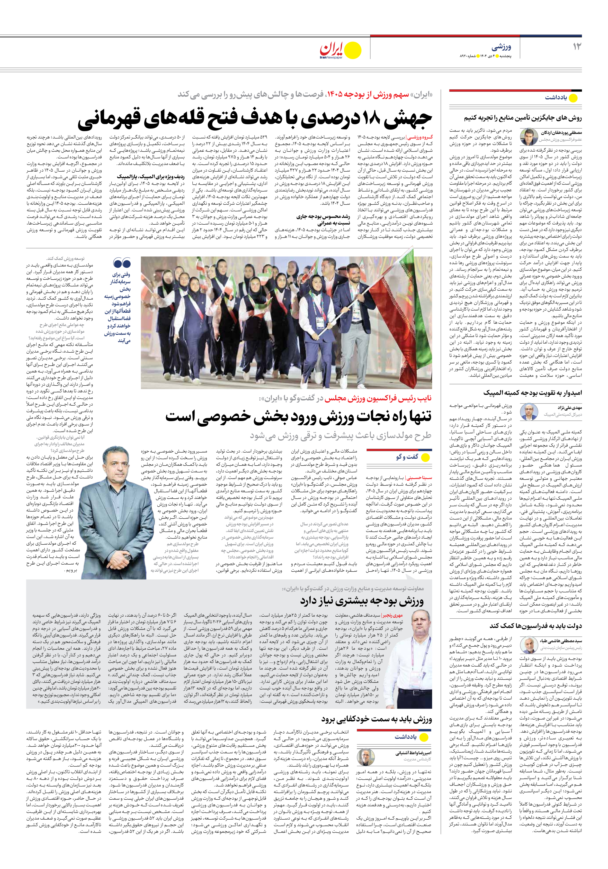 «ایران» سهم ورزش از بودجه ۱۴۰۵، فرصتها و چالشهای پیشرو را بررسی میکند