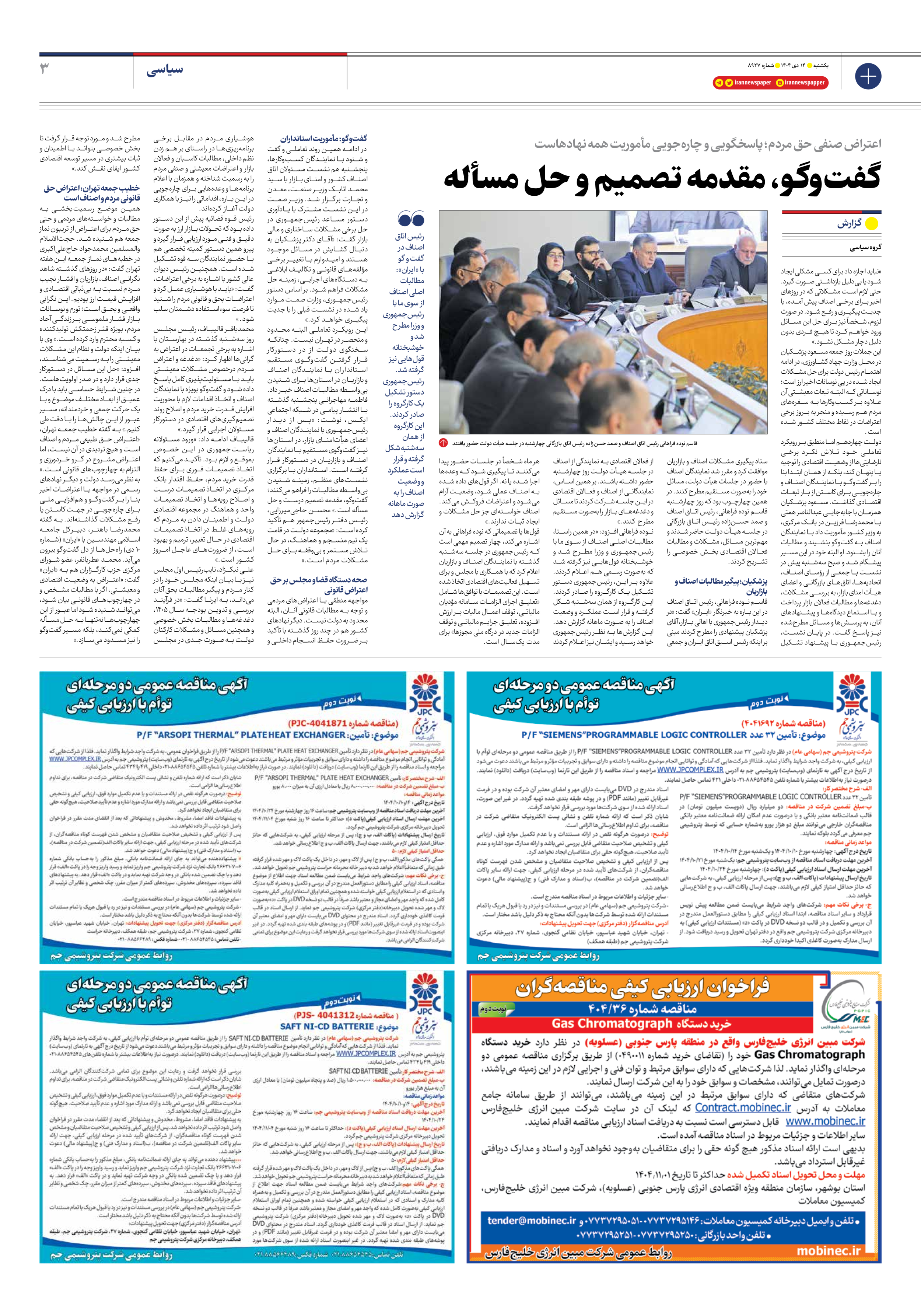 دولت چهاردهم اما منطبق بر رویکرد تعاملی خود تلاش نکرد برخی نارضایتیها از وضعیت اقتصادی را توجیه یا پنهان کند، بلکه از همان ابتدا بنا را بر گفتوگو با نمایندگان اصناف و چارهجویی برای کاستن از بار تبعات اقتصادی گذاشت. مسعود پزشکیان همزمان با جابهجایی عبدالناصر همتی با محمدرضا فرزین در بانک مرکزی، به وزیر کشور مأموریت داد با نمایندگان اصناف به گفتوگو بنشیند و مطالبات آنان را بشنود. او البته خود در این مسیر پیشگام شد و صبح سهشنبه پیش در نشست با جمعی از رؤسای اصناف، اتحادیهها، اتاقهای بازرگانی و اعضای هیأت امنای بازار، به بررسی مشکلات، دغدغهها و مطالبات فعالان بازار پرداخت و با استماع دیدگاهها و پیشنهادهای آنان، به پرسشها و مسائل مطرحشده نیز پاسخ گفت. در پایان نشست، رئیسجمهوری با پیشنهاد تشکیل ستاد پیگیری مشکلات اصناف و بازاریان موافقت کرد و مقرر شد نمایندگان اصناف با حضور در جلسات هیأت دولت، مسائل خود را بهصورت مستقیم مطرح کنند. در همین چهارچوب بود که روز چهارشنبه قاسم نوده فراهانی، رئیس اتاق اصناف و صمد حسنزاده رئیس اتاق بازرگانی در جلسه هیأت دولت حاضر شدند و مهمترین مسائل، مشکلات و مطالبات فعالان اقتصادی بخش خصوصی را تشریح کردند.