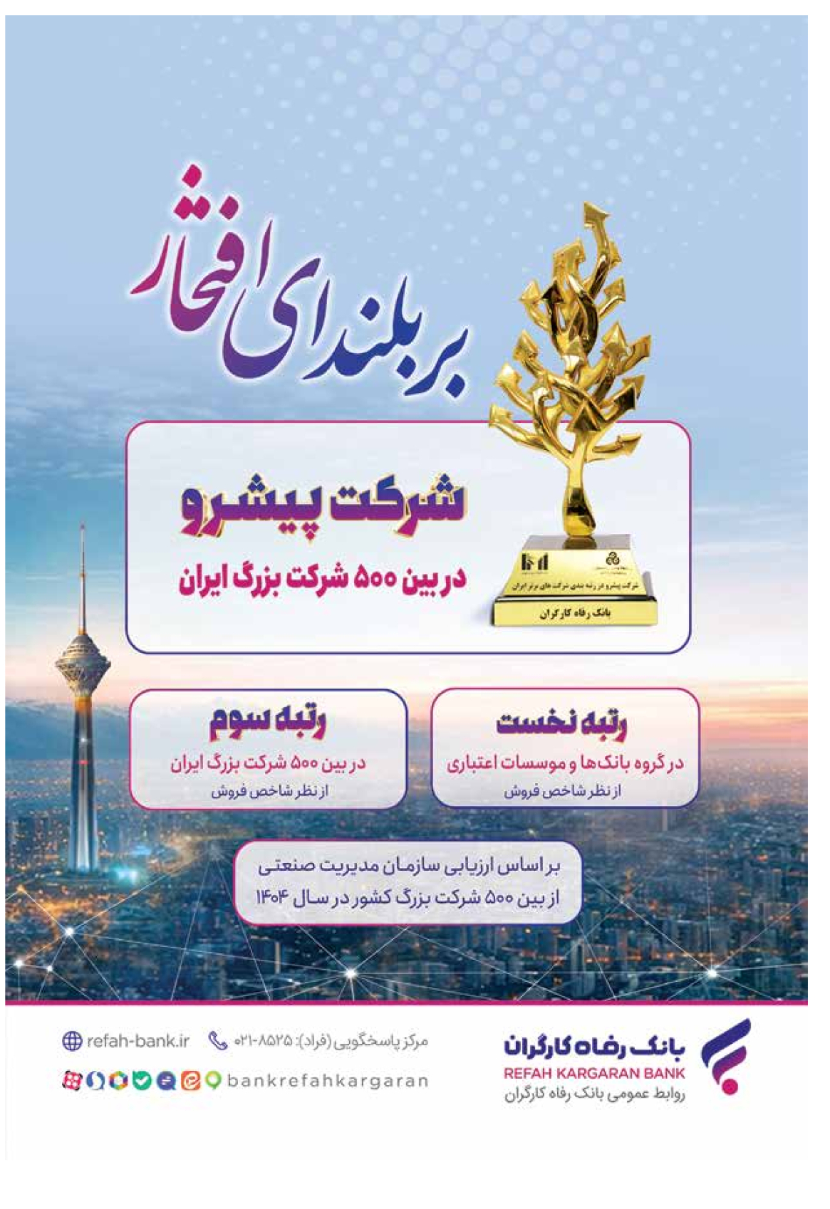 در حافظه موقت ذخیره شد... تصویر بر بلندای افتخار بانک رفاه کارگران ۰۸ بهمن ۱۴۰۴ شماره هشت هزار و نهصد و چهل و هفت - صفحه ۴