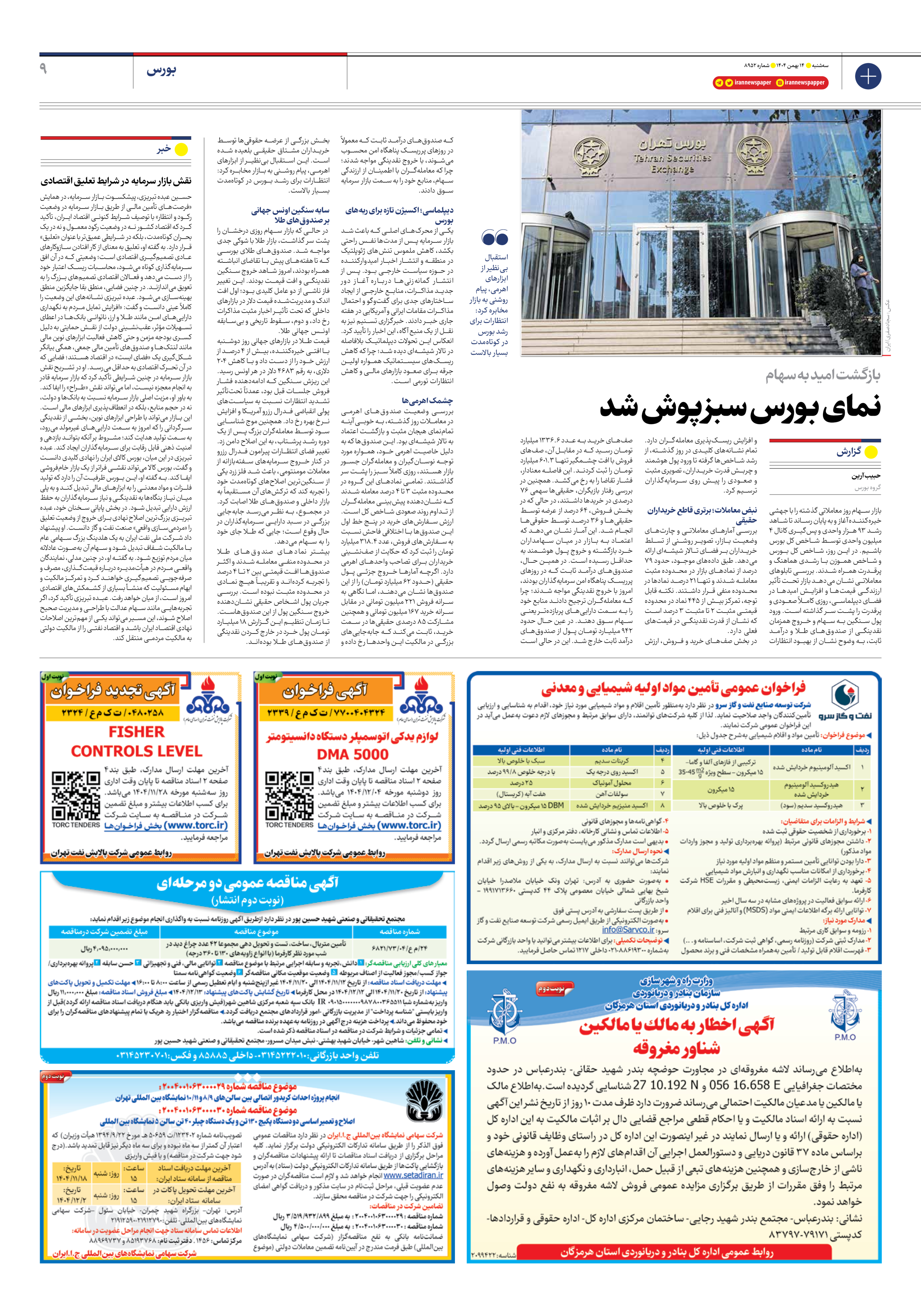 نمای بورس سبزپوش شد