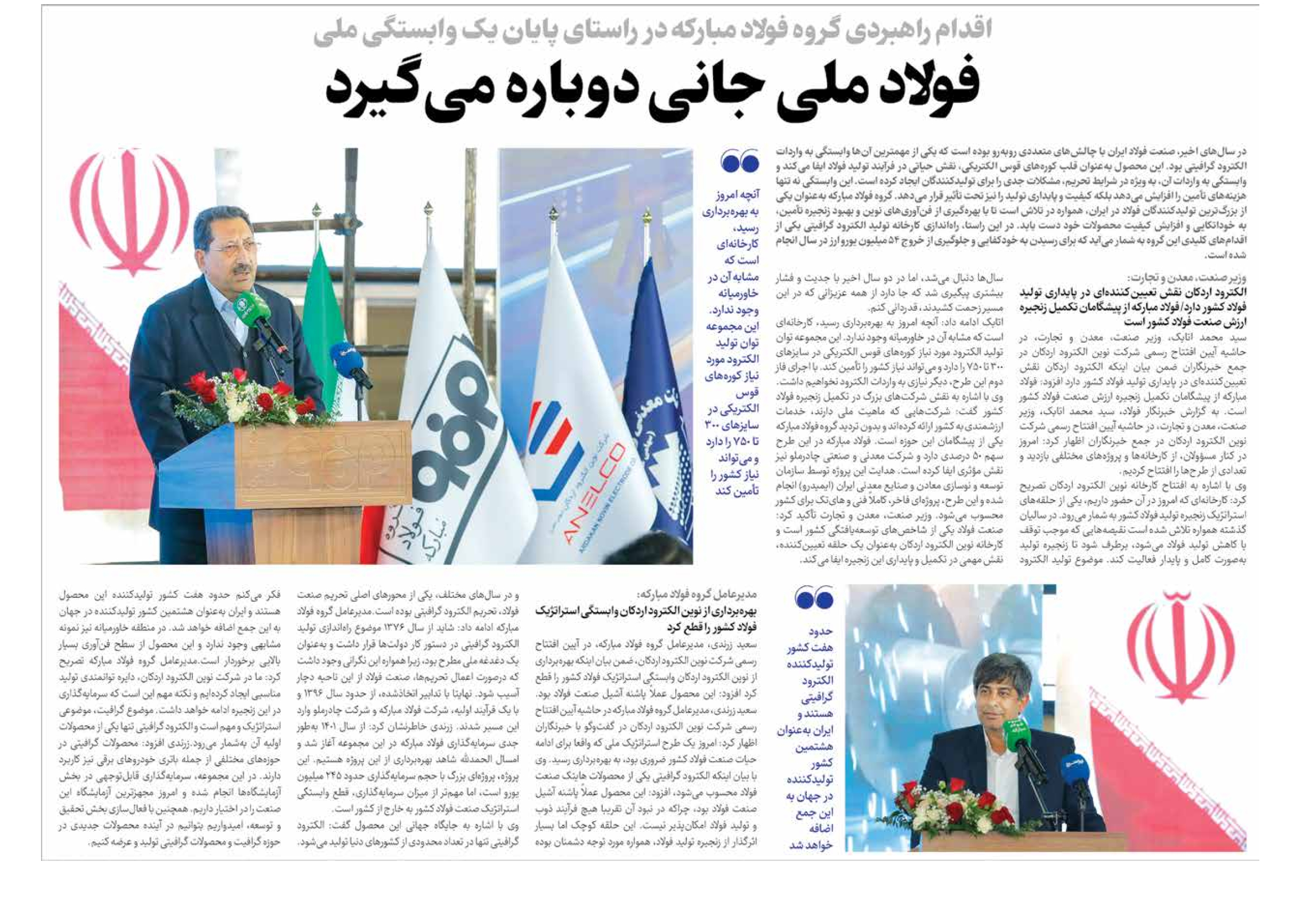 بهرهبرداری از نوین الکترود اردکان وابستگی استراتژیک فولاد کشور را قطع کرد