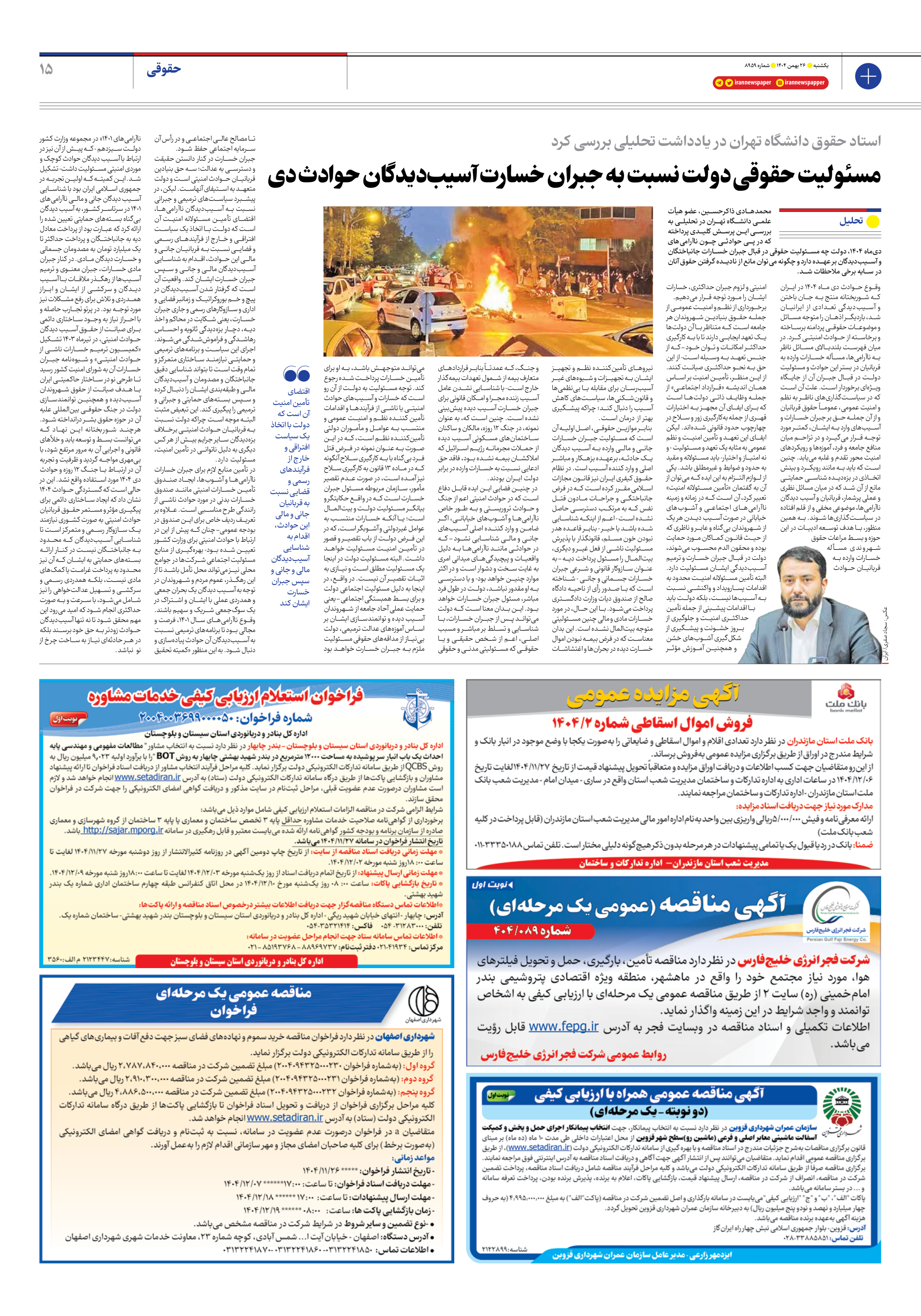 مسئولیت حقوقی دولت نسبت به جبران خسارت آسیبدیدگان حوادث دی