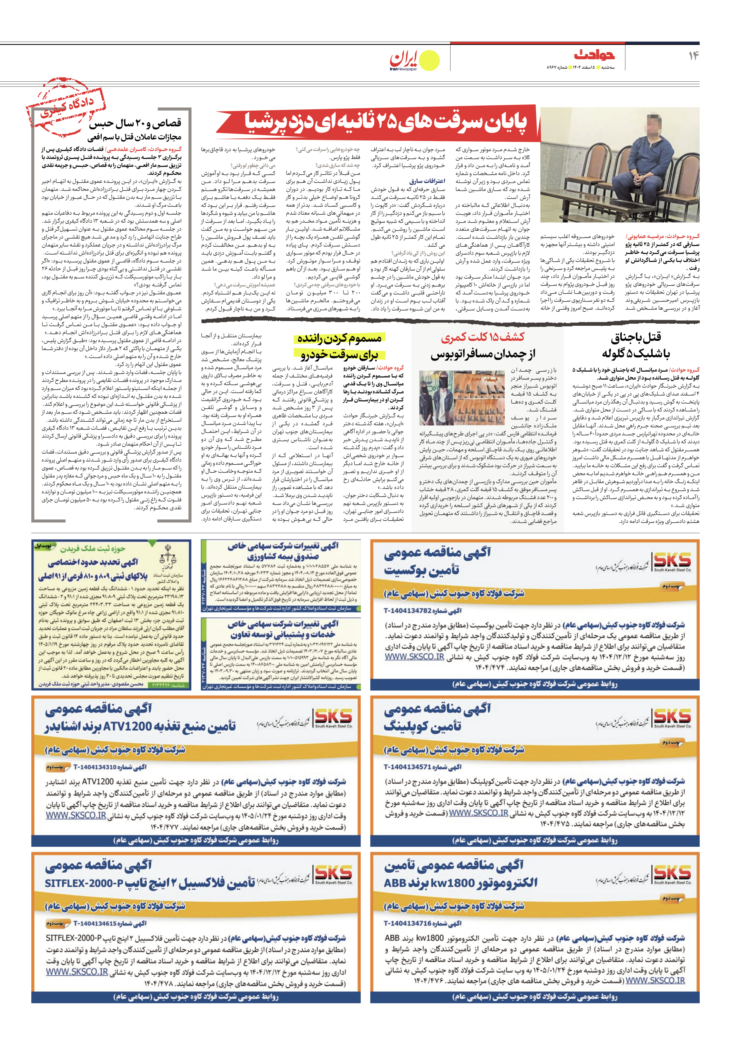 بازرسی چمدان دختر و پسر مسافر در اتوبوس شیراز منجر به کشف 15 قبضه کلت کمری و دهها فشنگ شد.