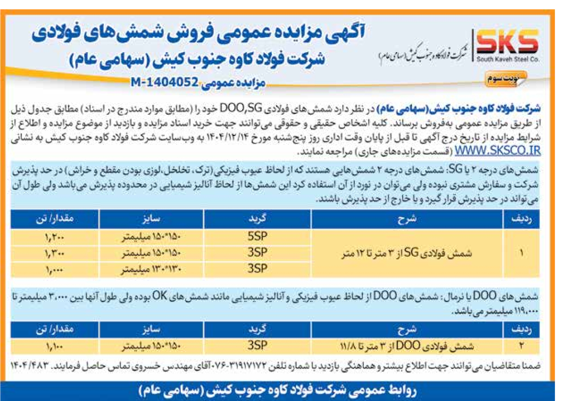 آگهی مزایده عمومی فروش شمشهای فولادی