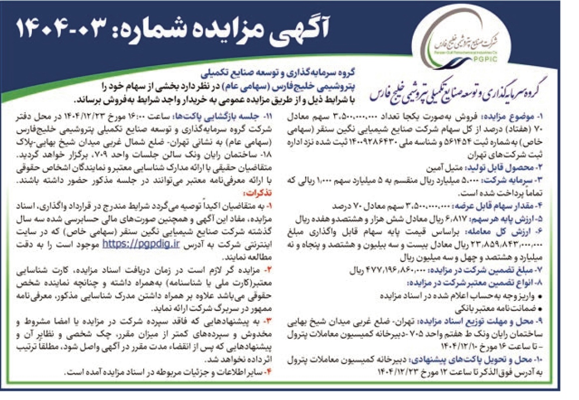 آگهی مزایده شماره: ۰۳-۱۴۰۴