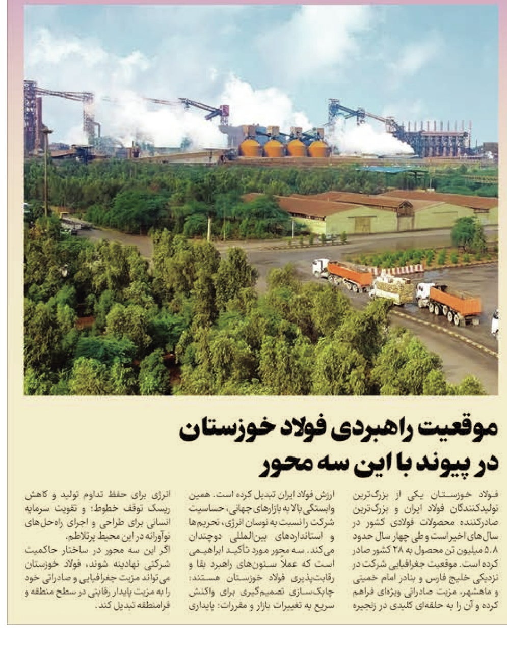 در حافظه موقت ذخیره شد... تصویر موقعیت راهبردی فولاد خوزستان شرکت فولاد خوزستان ۰۷ اسفند ۱۴۰۴ شماره هشت هزار و نهصد و شصت و نه - صفحه ۵