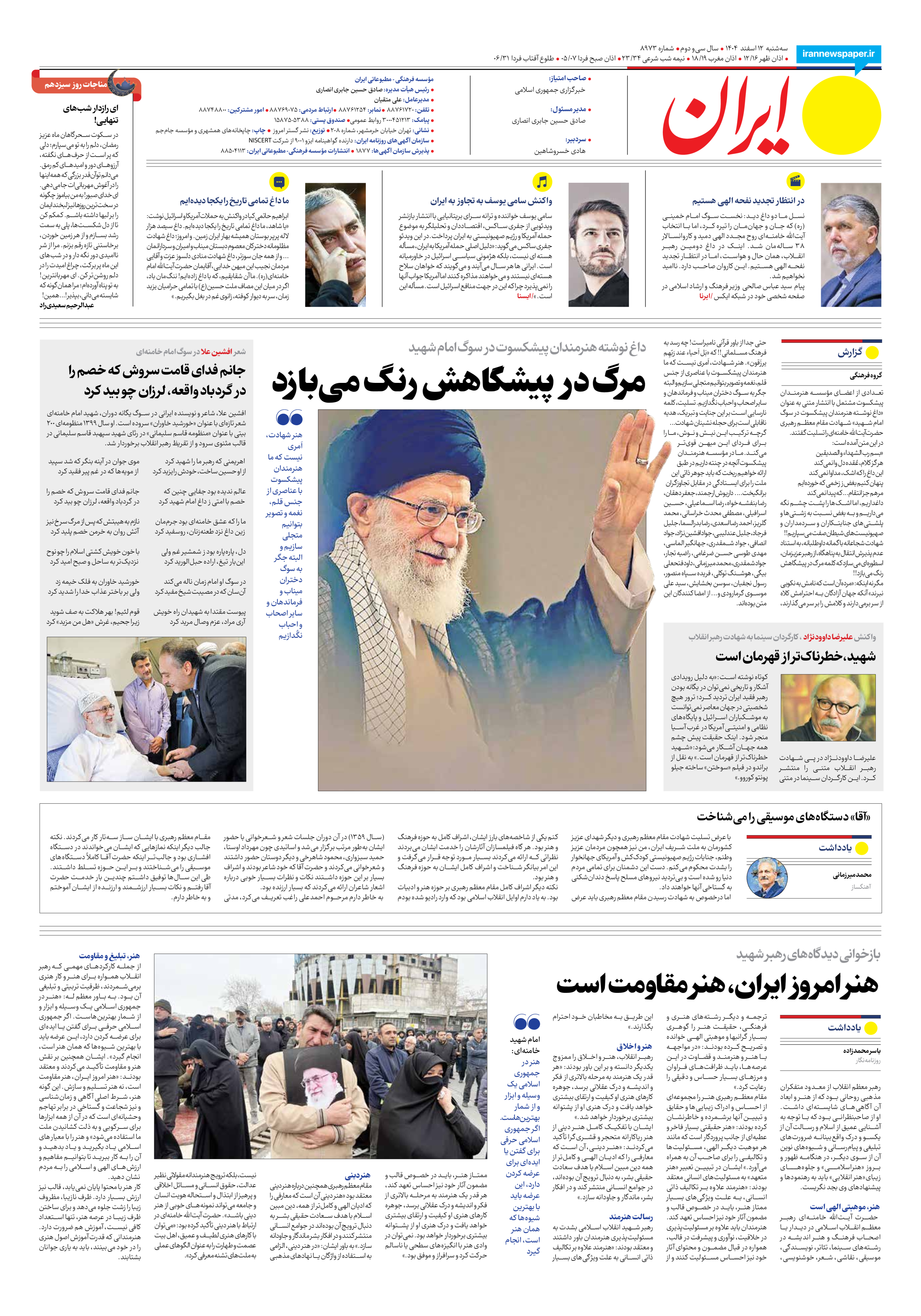 اما درخصوص به شهادت رسیدن مقام معظم رهبری باید عرض کنم یکی از شاخصههای بارز ایشان، اشراف کامل به حوزه فرهنگ و هنر بود. هر گاه فیلمسازان آثارشان را خدمت ایشان میبردند نظراتی که ارائه میکردند بسیار مورد توجه قرار میگرفت و این امر بیانگر شناخت و اشراف کامل ایشان به حوزه فرهنگ و هنر بود.