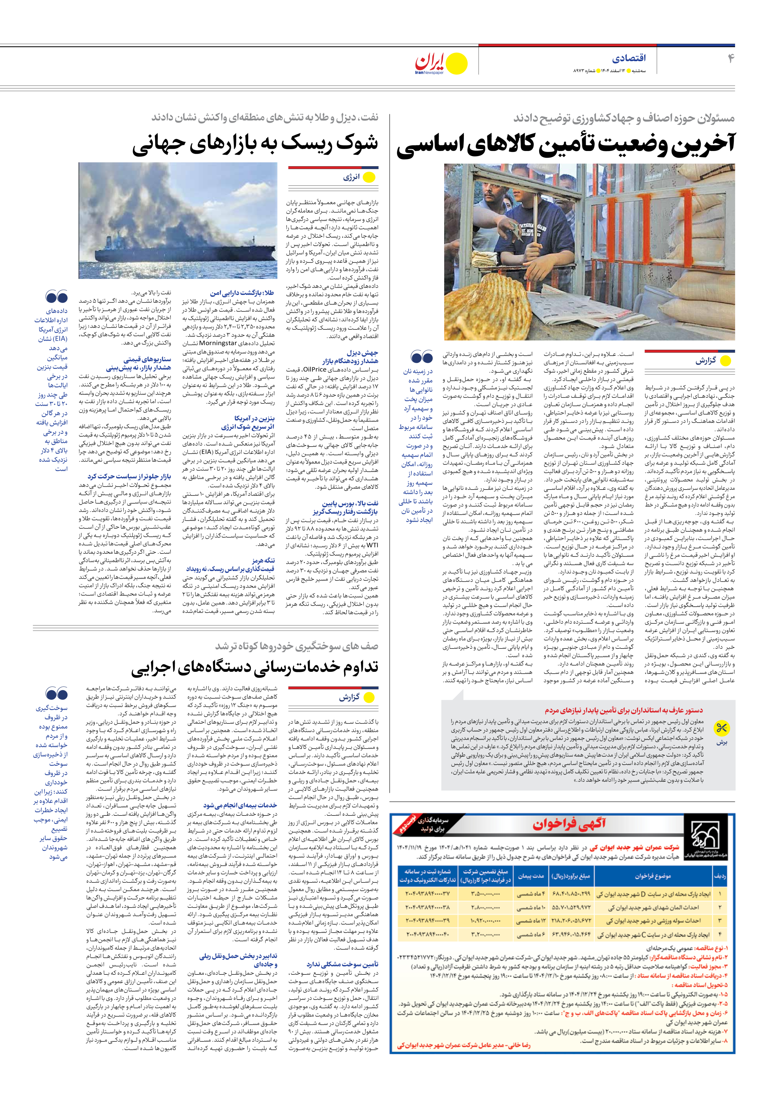 با گذشت سه روز از تشدید تنشها در منطقه، روند خدماترسانی دستگاههای اجرایی کشور بدون وقفه ادامه یافته و مسئولان بر پایداری تأمین کالاها و خدمات اساسی تأکید دارند. بر اساس اعلام نهادهای مسئول، سوخترسانی، تخلیه و بارگیری در بنادر، ارائه خدمات بیمهای، حملونقل جادهای و ریلی و همچنین فعالیت بازارهای کالایی در بورس، طبق روال در حال انجام است و تمهیدات لازم برای مدیریت شرایط پیشبینی شده است.