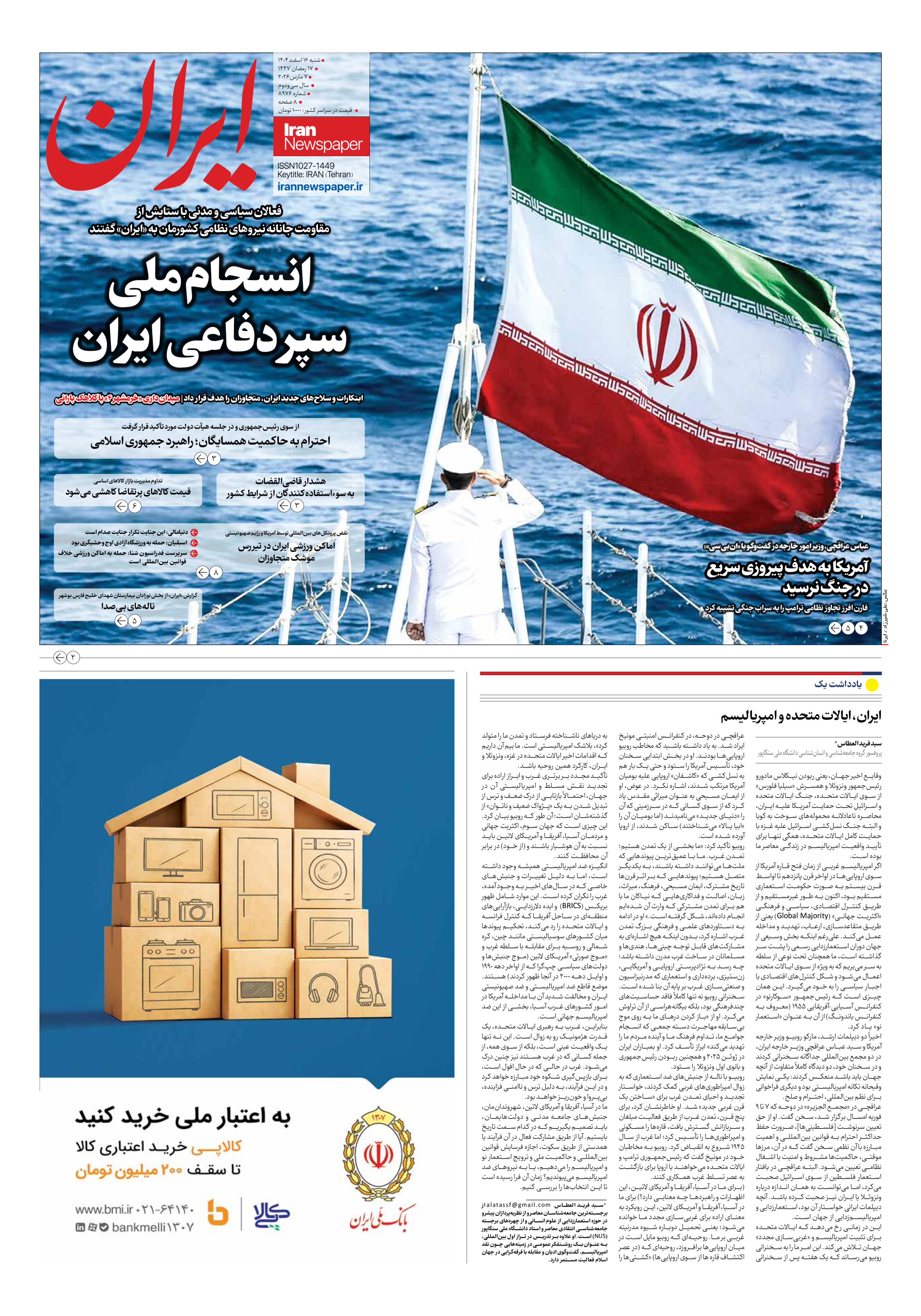 انسجام ملی سپر دفاعی ایران