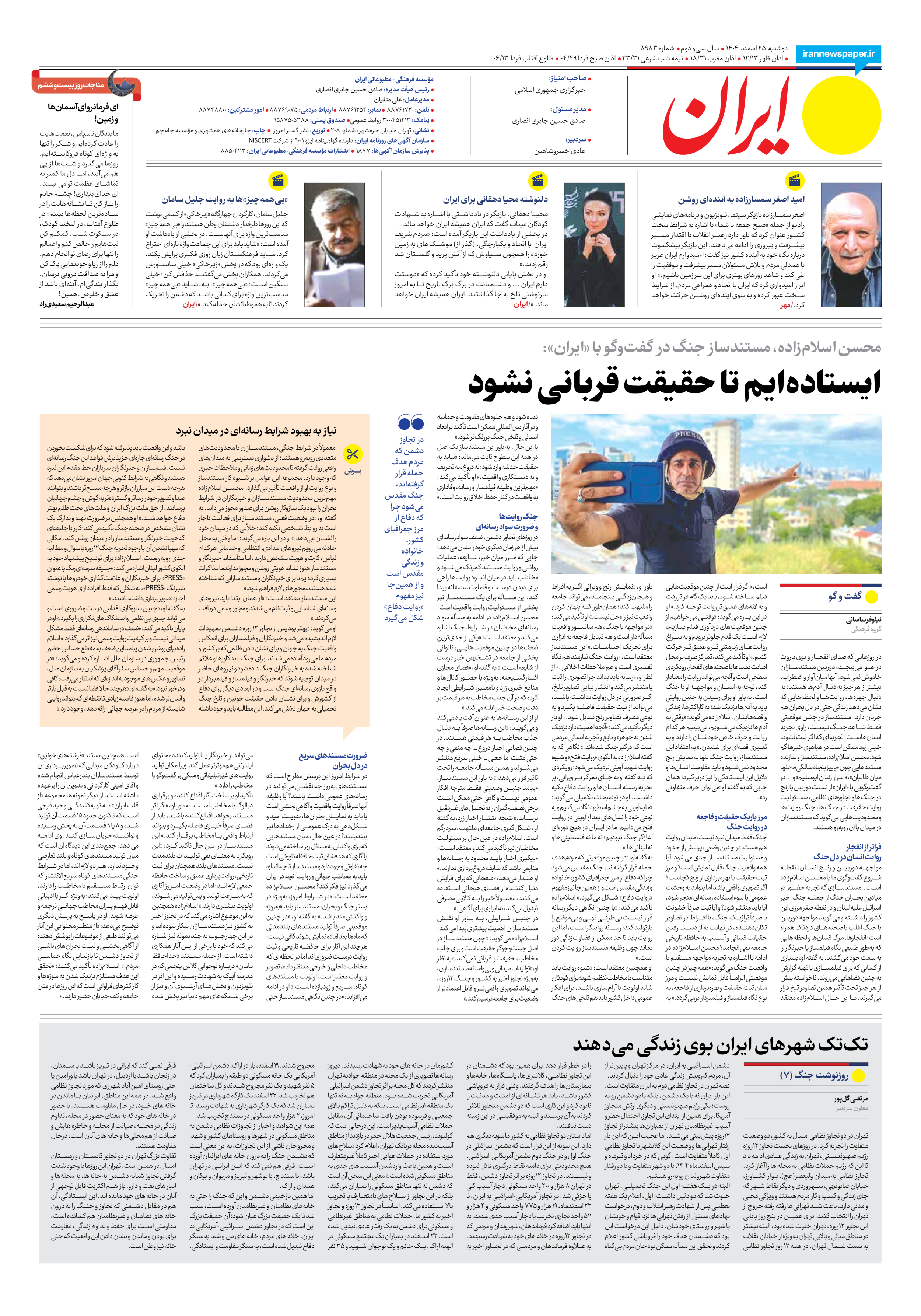 IRAN DAILY NEWSPAPER