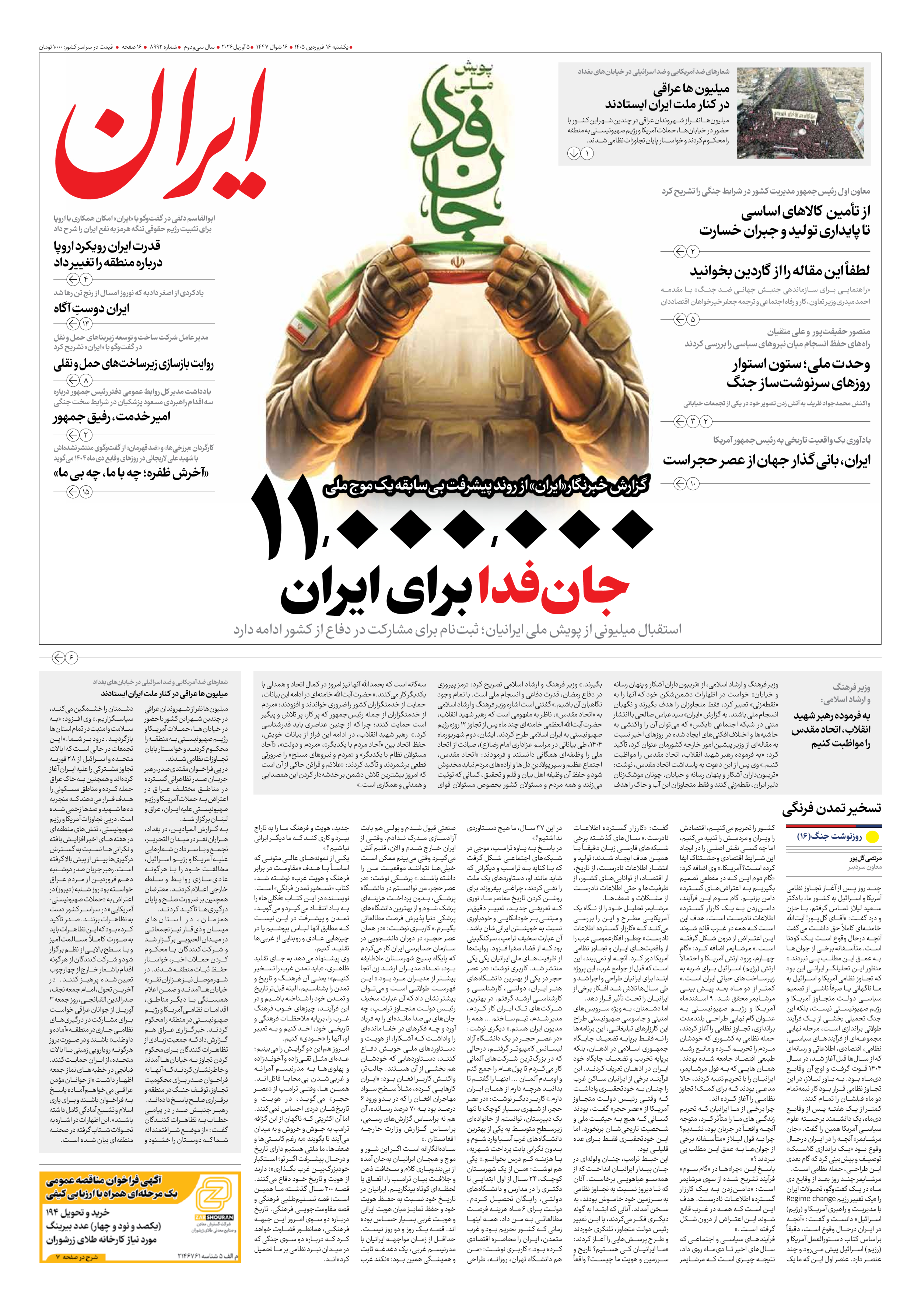 - شماره هشت هزار و نهصد و نود و دو - ۱۶ فروردین ۱۴۰۵