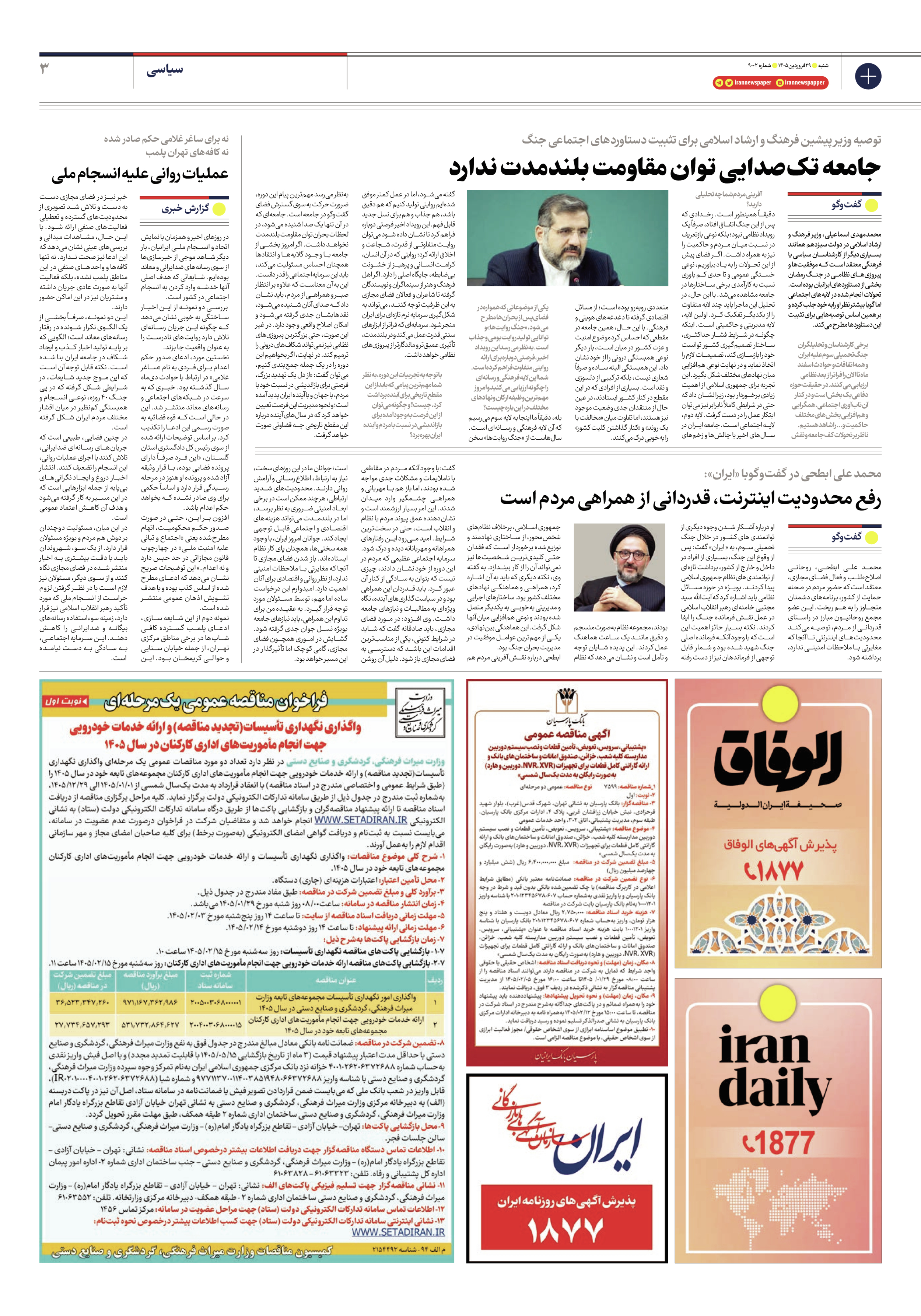 - شماره نه هزار و دو - ۲۹ فروردین ۱۴۰۵